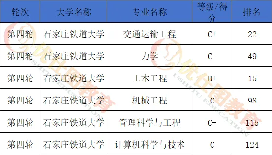 2.王牌专业实力强劲:在全国第四轮学科评估中,土木工程学科为B+水平,交通运输工程入选河北省"双一流"优势学科。在2024年软科中国大学专业排名中,学校53个本科专业有50个上榜(占比94.3%),其中交通运输和土木工程两个专业获评A等级,智慧交通、轨道交通信号与控制等23个专业获评B+等级。