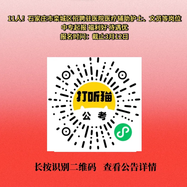【石家庄招聘】11人!中专起报!石家庄市栾城区招聘驻医院医疗辅助护士、文员等岗位!