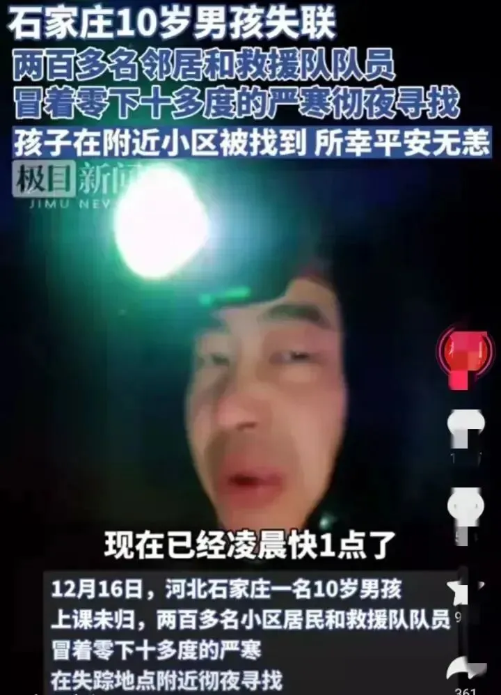 深夜零下16度,石家庄10岁男孩失联:找到后孩子一句话,全场都震惊了...