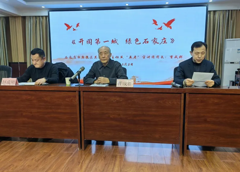 当精神抖擞的曹老走上讲台,台下瞬间响起热烈掌声,曹成群首先从石家庄历史文化底蕴深厚的特点讲起,他用千年古郡、百年城市、“新中国从这里走来”三句话为题目,简明扼要将宣讲引入主题,讲述了燕赵故里的石家庄从村庄到省会的百年跃迁。用事实印证“火车拉来的城市”之名,实至名归。红色基因薪火相传,当讲到“新中国从这里走来”时,大家聚精会神地听他讲到“石家庄是解放战争时期中国共产党解放的第一座大城市,是新中国的试验田,中央人民政府的雏形—华北人民政府在这里成立,中国人民银行在这里创立,第一套人民币在这里发行。”会议室内爆发出热烈的掌声。