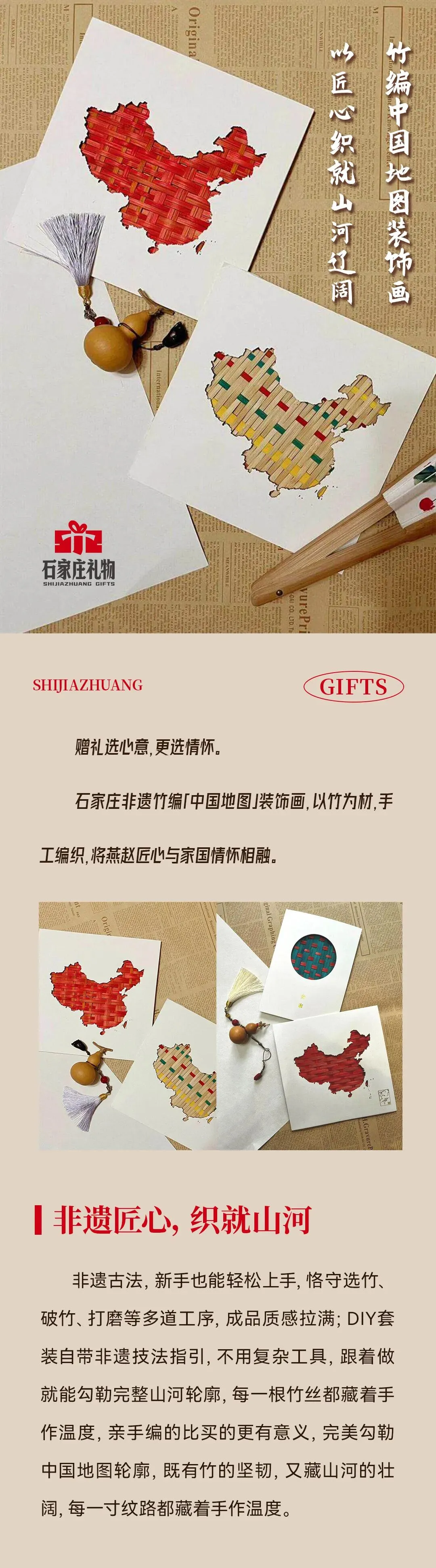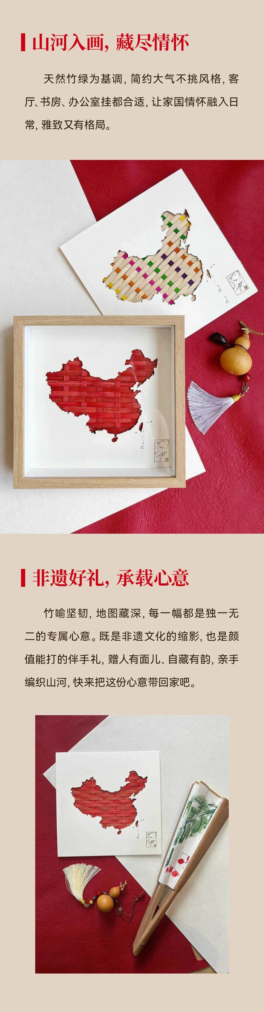 >石家庄非遗礼物|竹编中国地图装饰画,以匠心织就山河辽阔