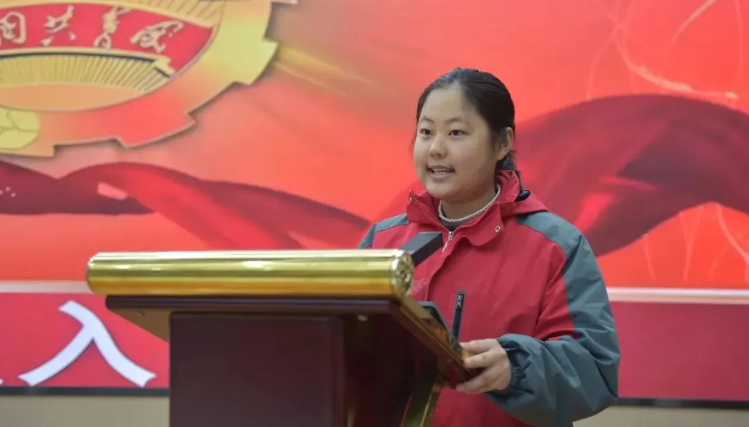 老团员代表李佳钰分享成长感悟,以榜样力量激励学弟学妹勇担使命,分享了自己入团以来的成长与收获,鼓励新团员们以团员身份严格要求自己,在学习中争先、在服务中奉献,用实际行动诠释团员的责任与担当;新团员代表李旭阳吐露心声,她表示将牢记入团初心,以榜样为标杆,勤奋学习、锤炼本领,努力成长为能够担当民族复兴大任的时代新人,许下以青春之我报效祖国的铮铮诺言。