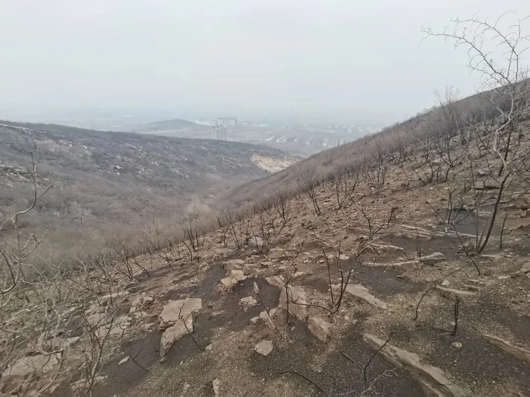 📍山上的树🌳黑漆漆的,一看就是着过火🔥的样子,而且四周山上也都烧焦了,远远望去,黑乎乎一片,看来火势不小。希望来年的一场春风,这片土地能够重新生出绿意来!