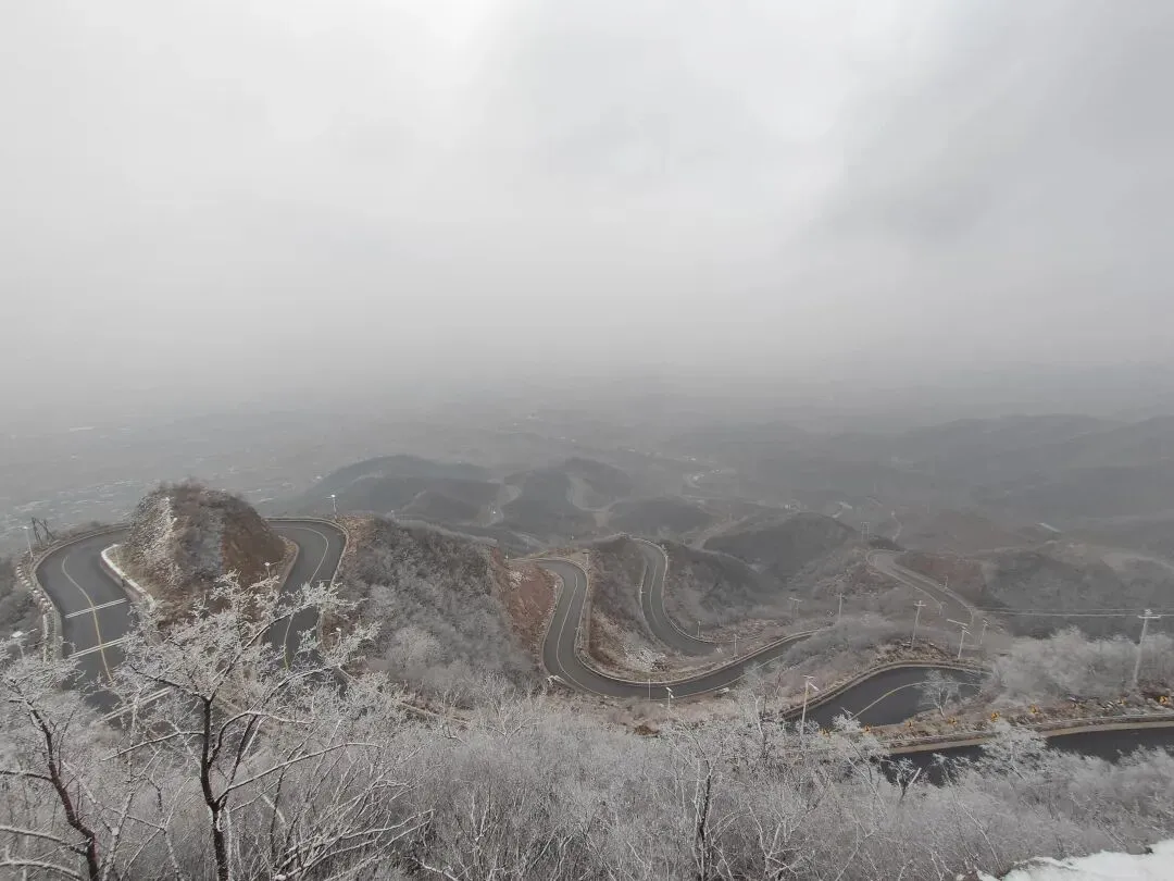 📍说实话,当天的天气实在不怎么样,来之前就预报有雪❄️,我打心底里不想再往前走了。可世事往往如此——正是这快要下雪的阴沉天气,反而让我们撞见了一山的雾凇。放眼望去,白茫茫一片,也是一番别样的美。
