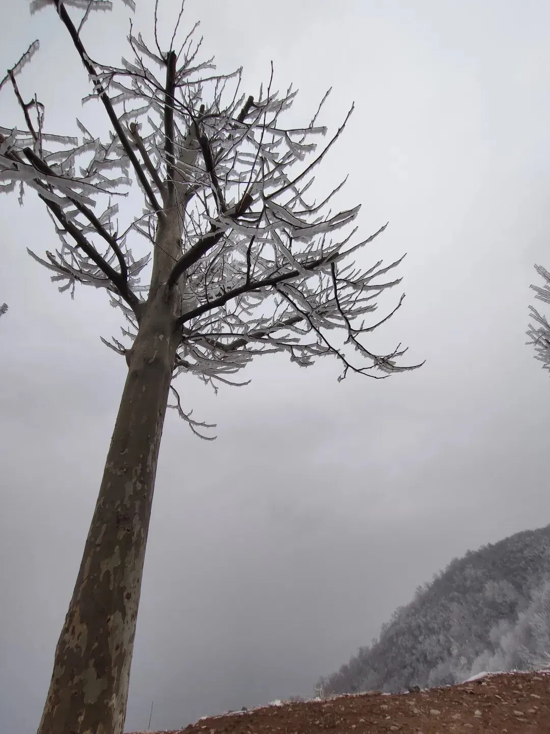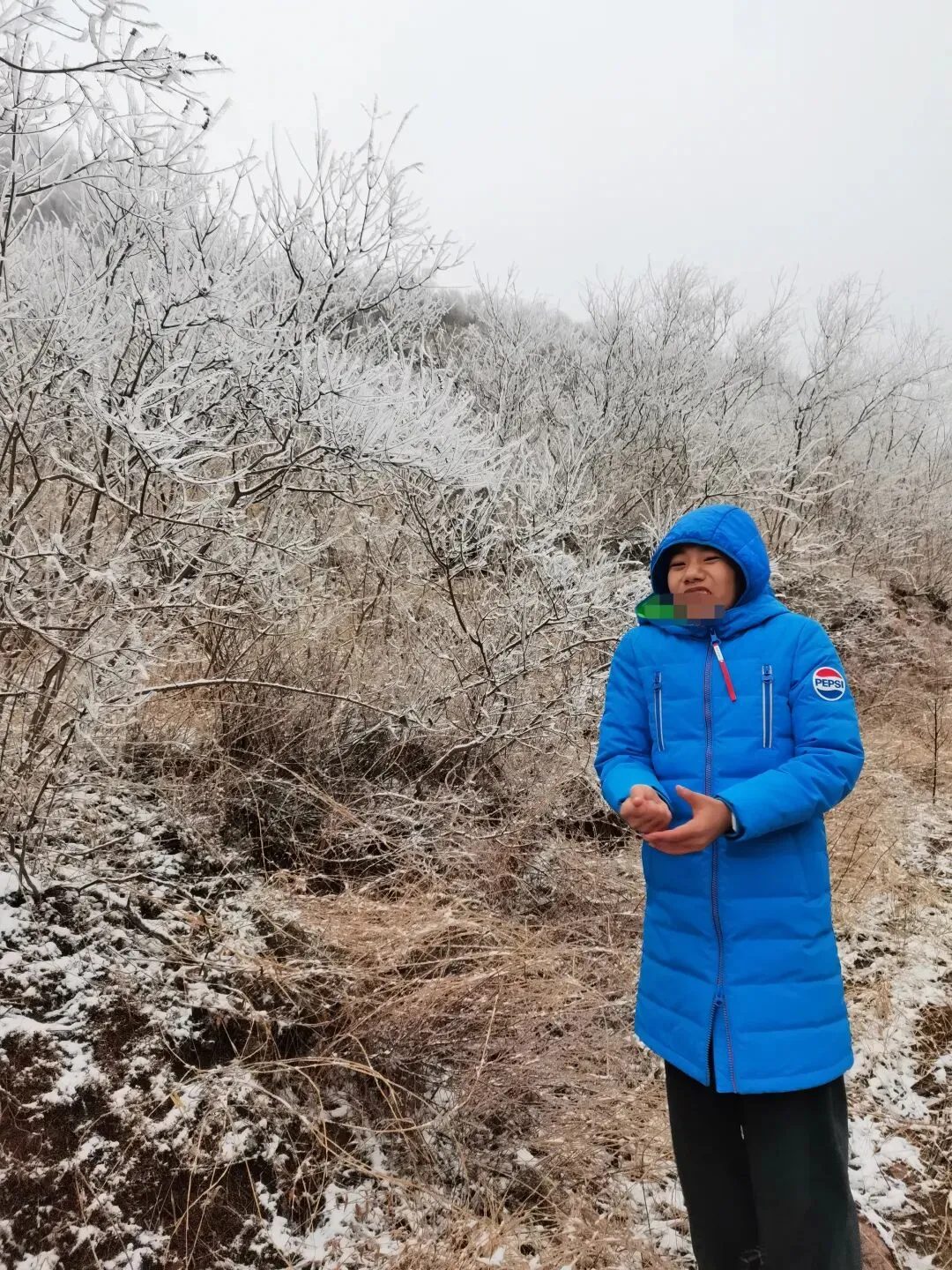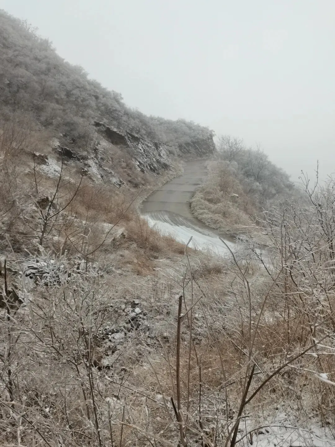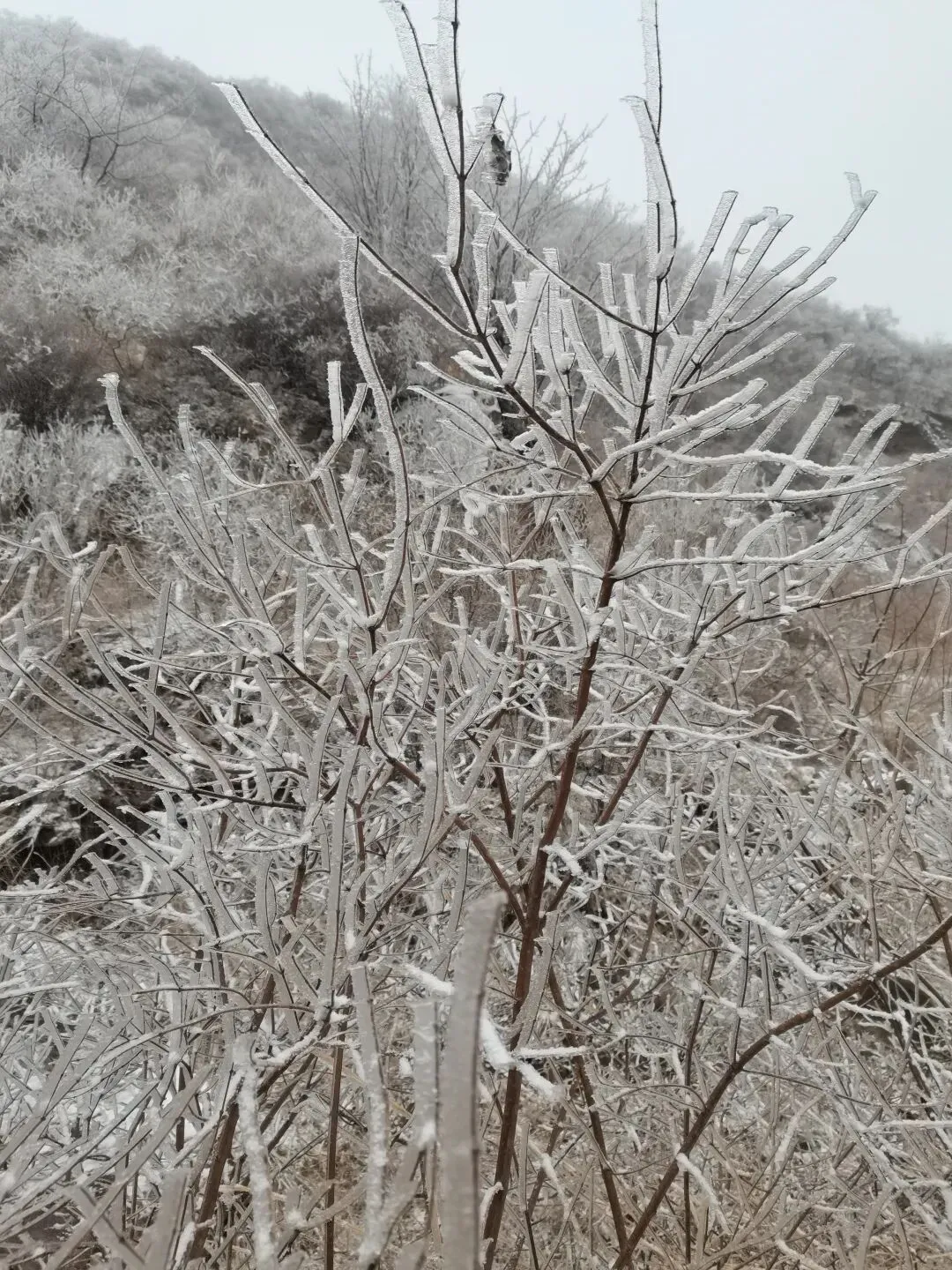 📍上山时没注意,直到下山才发现,随着盘山路一点点升高,雾凇也越来越多,山脚下几乎没有。孩子特别好奇,顺手折一根带有雪的草杆,握在手里才发现——那不是普通的雪,外边裹着一层薄冰,硬邦邦的。往地上一摔,溅落一地,他好开心😁
