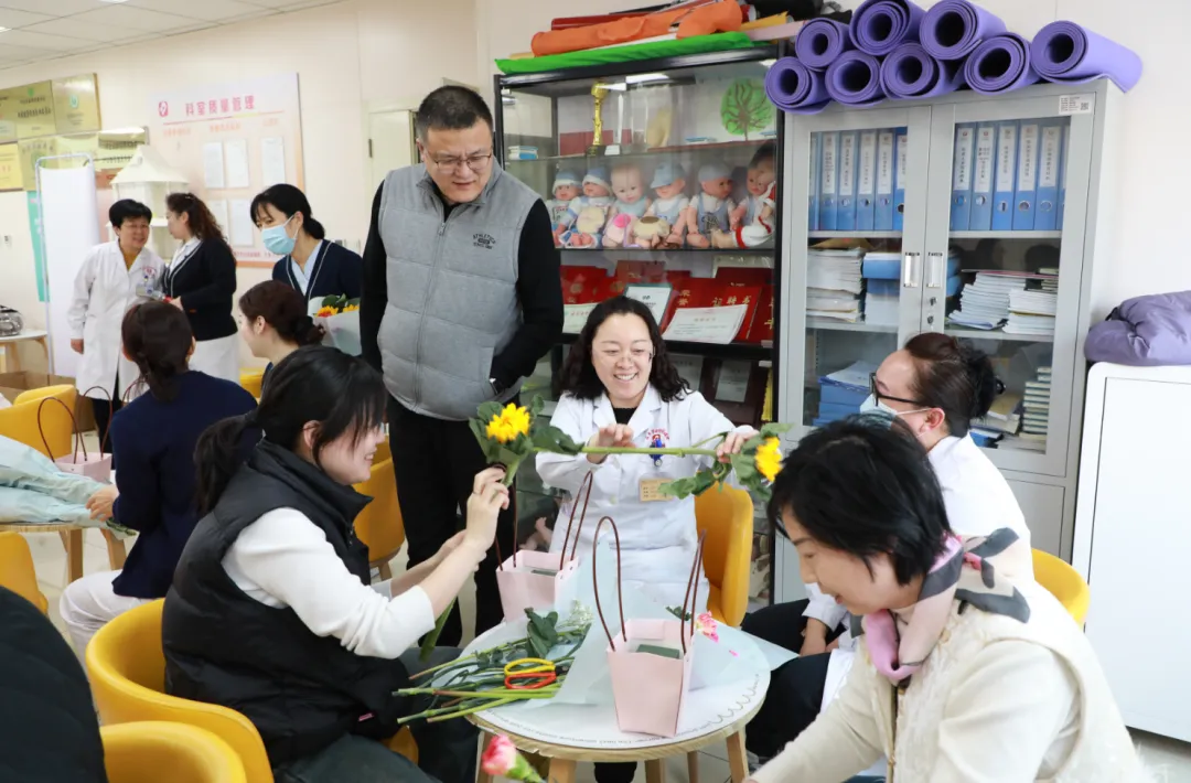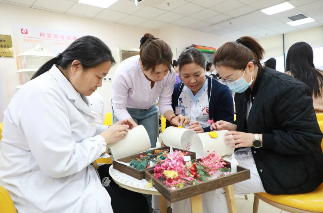 3月5日、6日下午,活动在医院二楼孕妇学校举行。活动现场设置压花台灯DIY和插花体验两个环节,吸引了全院女职工积极参与。大家在轻松愉快的氛围中动手创作,在忙碌的工作之余放松身心,感受节日的温暖与美好。
