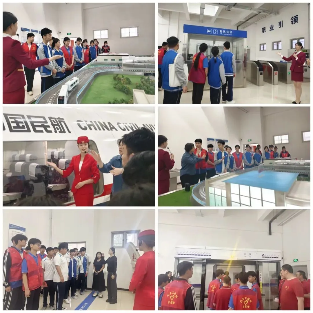在运输管理专业部实训基地,来访的同学们在志愿者的引导下,参观了教学实训一体化的轨道交通行车沙盘、安检设备、售检票设备、波音737模拟机舱等,而且还体验了地铁进出站乘车服务,体验了登机和乘坐飞机过程。志愿者们俯身蹲在服务学生身旁,用手势引导、用微笑鼓励,让同学们亲身感受科技的魅力与伟大。
