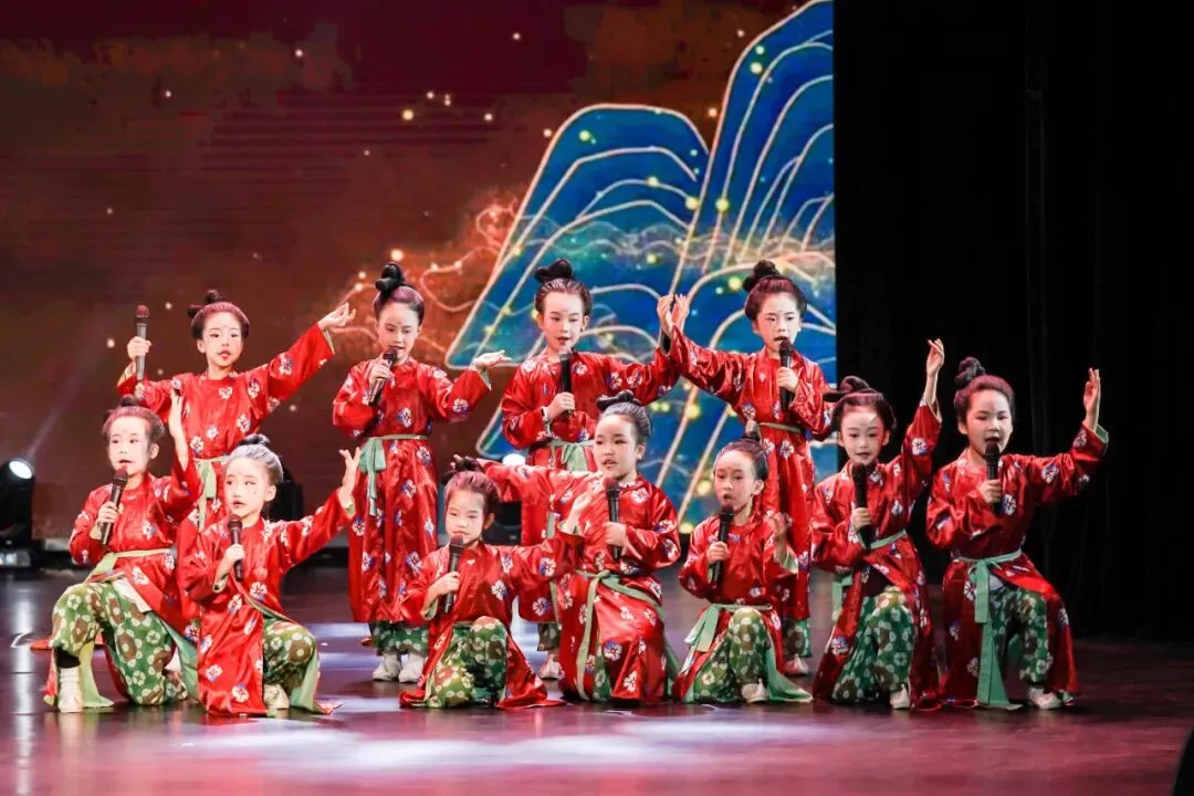 整场演出分为“古韵流芳·风雅颂、童心筑梦·向未来、非遗传承·中国年、家国情怀·英雄赞”四个篇章。在《只此青绿》《诗意中国》等节目中,孩子们通过诗词吟诵与舞台演绎,加深了对中华经典诗词和传统审美的理解与认同;在《装满梦的口袋》《我有一个美丽的梦》等节目中,锻炼了语言组织和舞台表现能力,增强了自信心与表达勇气;在《大唐三彩釉仕女俑》《逃出大英博物馆》《年俗小主播闹元宵》等节目中,学习了非遗技艺与节俗知识,提升了文化素养和口语传播能力;在《一粒湘米思念袁爷爷》《英雄时代》等节目中,感悟了英雄事迹与家国情怀,增强了对英雄的敬仰和社会责任感。