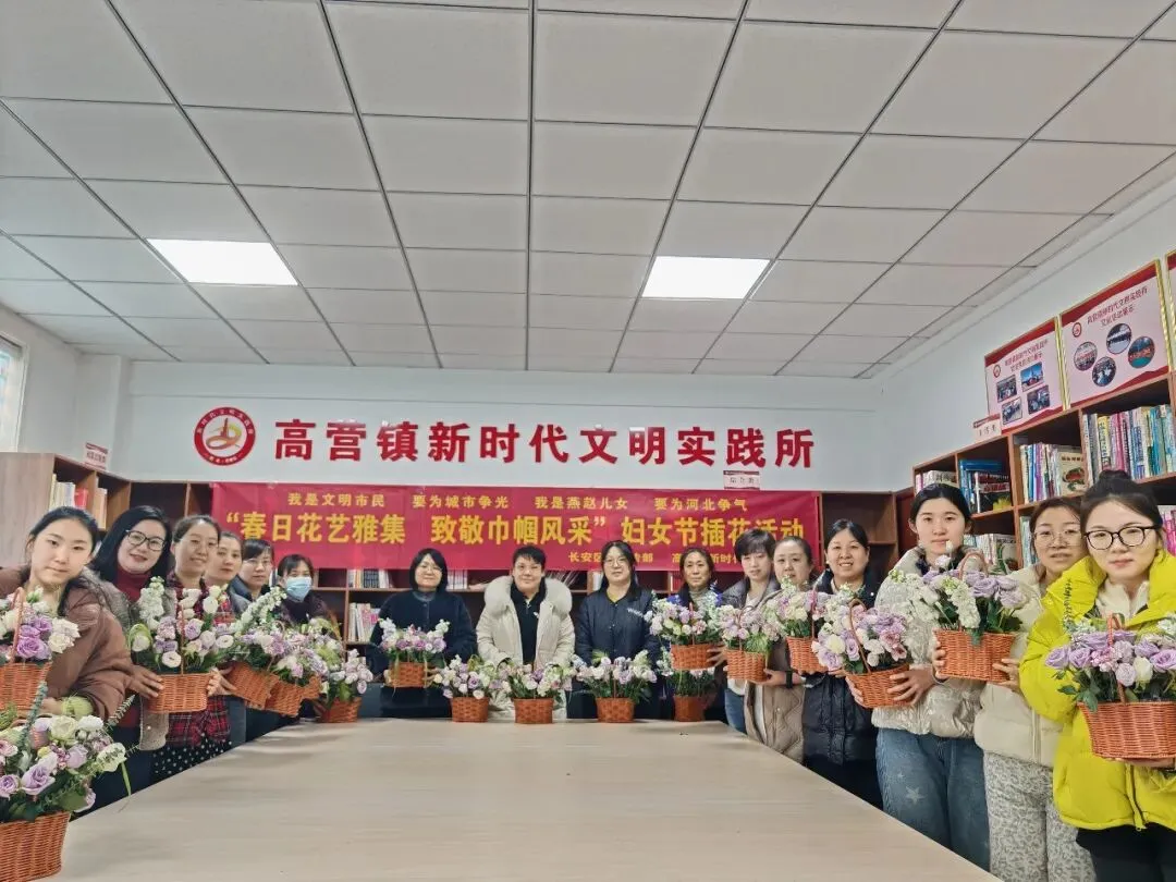 为丰富女性精神文化生活,展现新时代巾帼昂扬风采,3月5日下午,石家庄市长安区高营镇新时代文明实践所开展“春日花艺雅集 致敬巾帼风采”妇女节插花主题活动,邀请镇机关女职工、社区女工作者、辖区女性居民代表欢聚一堂,以花为媒、以艺传情,共度温馨雅致的节日时光。