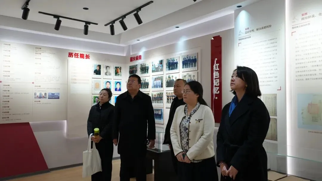 上午,蔡欣欣副所长一行首先走进灵寿法院院史馆,在图文史料中全面了解灵寿法院的历史沿革、发展历程与红色司法研究成果。调研组对灵寿法院在党建队建、文化宣传、红色司法档案挖掘研究等方面的扎实工作和显著成效给予充分肯定。