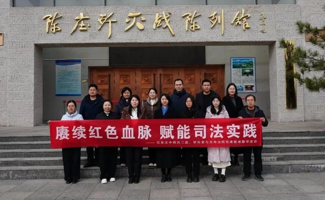 为深入贯彻落实全市法院工作会议精神,推动党建工作与审判业务深度融合、同频共进,3月6日,石家庄中院民二庭、研究室一行下沉灵寿法院,开展“赓续红色血脉 赋能司法实践”主题党建联建联学活动。河北省社科院法学研究所副所长蔡欣欣应邀参加,两级法院干警齐聚一堂,共学理论、共研实务、共传红色基因。