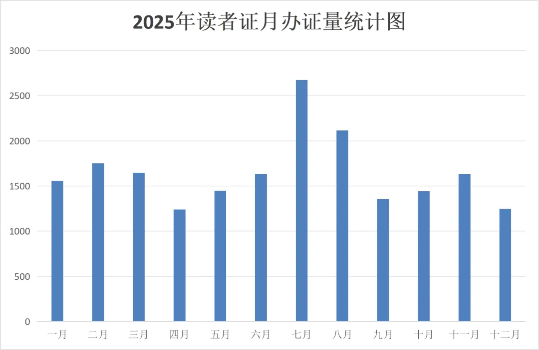 2025年石家庄市图书馆全年共接待读者290万余⼈次,同比增长22.0%。截至2025年12月读者证累计持有量32.7万张。2025年新办读者证19411张,其中免押⾦读者证19327张,实体证84张。