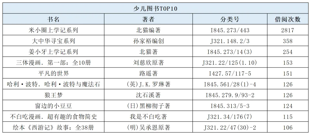 从2025年的纸质图书(含期刊)借阅情况分布图上看,少儿图书的借阅量稳居⾸位,《米小圈上学记》仍然深受小朋友们的喜爱。在成人图书中,文学类图书仍是读者借阅热门!期刊类,综合文摘类期刊:《读者》《知音》借阅量最高,其次是新闻时政类和科普历史类。