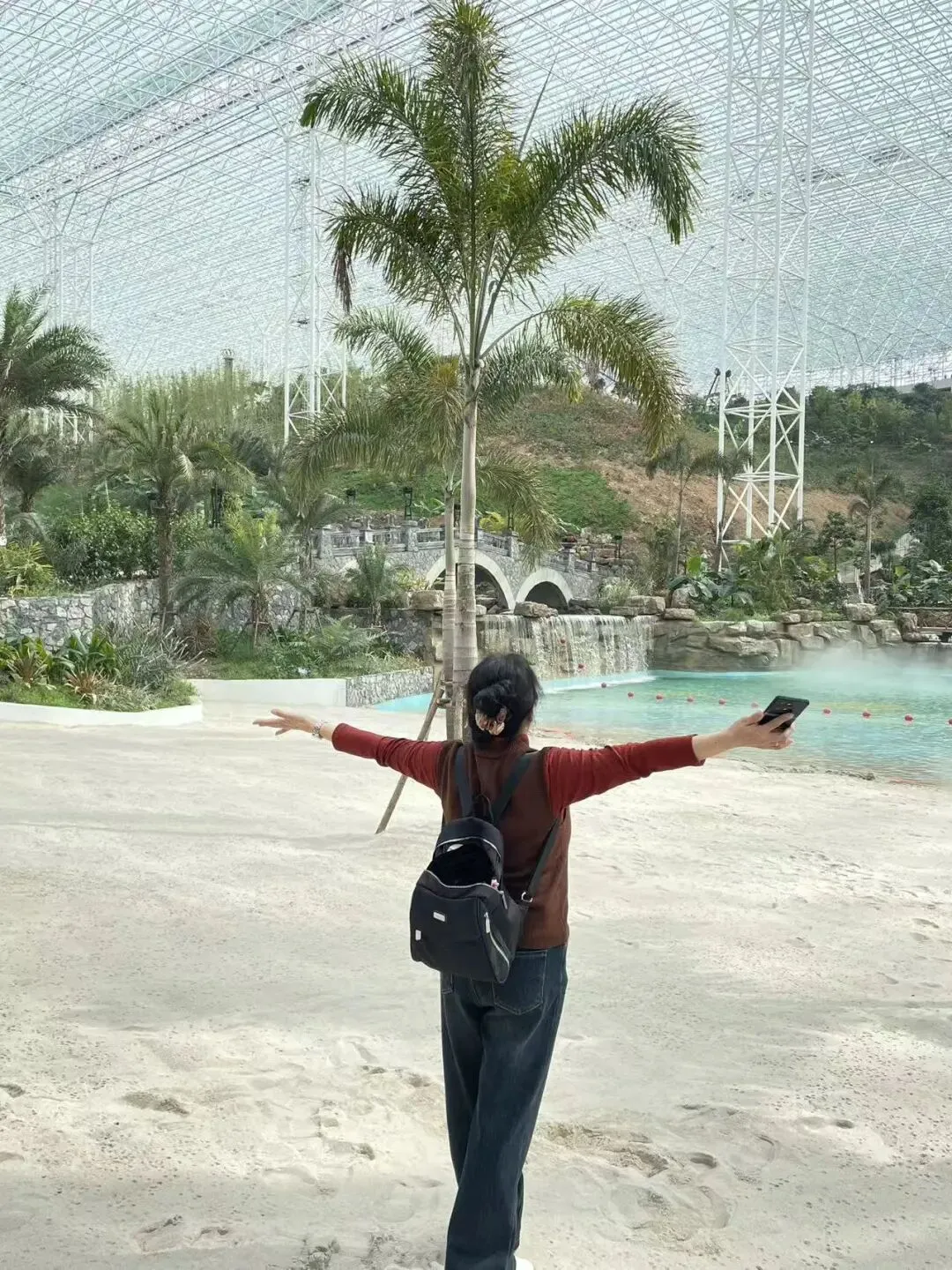 步入内部,大家仿佛瞬间穿越到了南国海滨。据介绍,该综合体通过智能环境控制技术,将温度与湿度常年保持在人体舒适的范围内(15-28℃,湿度60%以上),真正实现了冬无严寒、夏无酷暑。内部种植的百余种亚热带植物形成层次分明的丛林景观,大家漫步其中,不仅体验到了北方难得一见的热带海滨度假乐趣,也对这种“全季运营”的文旅新模式赞叹不已。