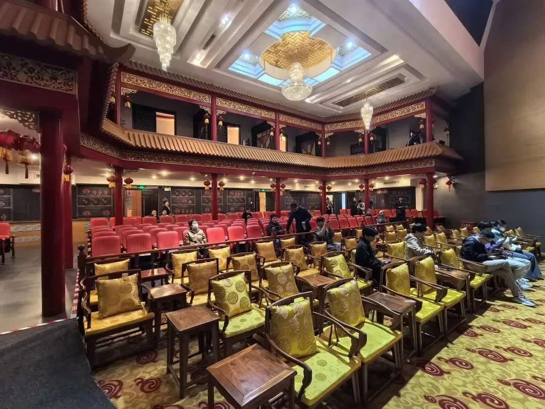 演艺厅的内外皆古意。坐在第一排,近距离地感受京剧的唱作打念的艺术魅力。