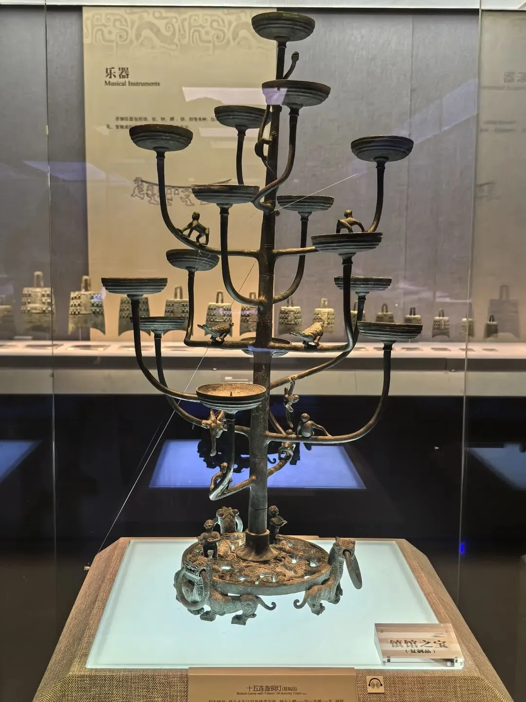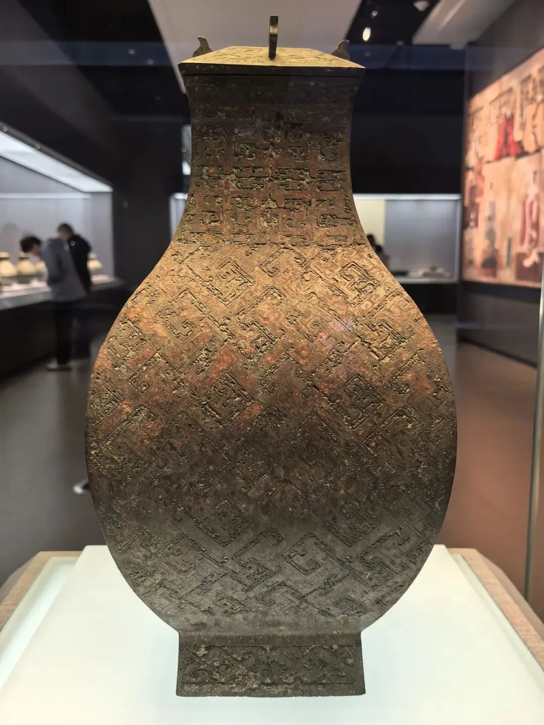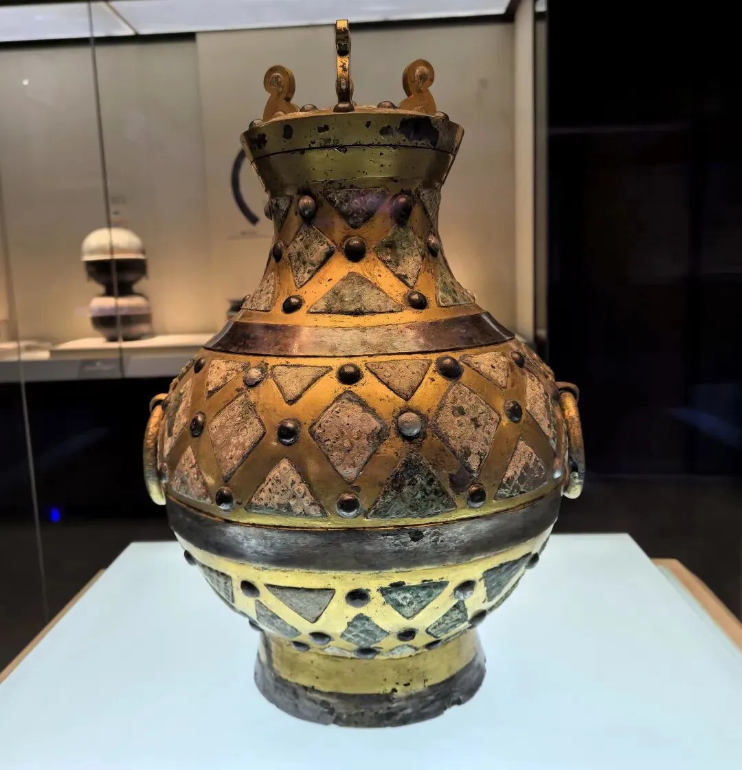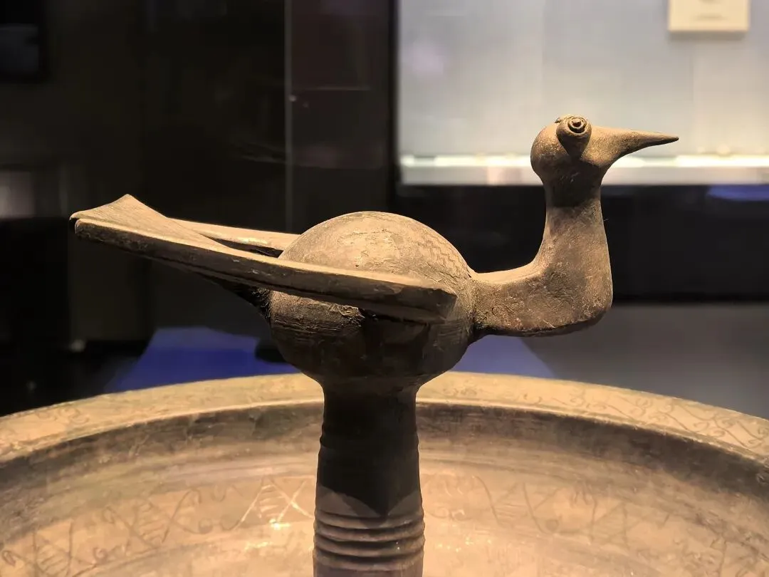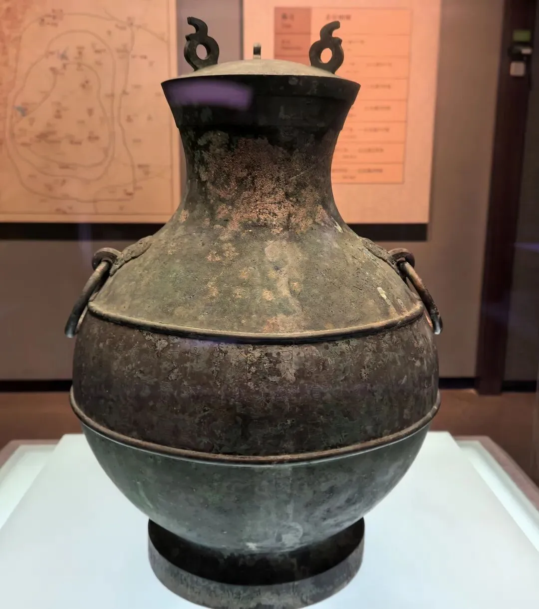 礼器、酒器。壶的四角各有一只矫龙,四壁刻有铭文450字,记载王cuo十四年中山伐燕胜利后用燕国的铜器熔铸此壶,颂扬中山国伐燕的战绩,阐述巩固政权的重要性,其中特别提到了中山国君世系,填补了史书空白。中山王cuo铁足铜鼎(复制品) 中山王cuo墓出土 礼器、食器是中山王cuo墓出土九鼎中的首鼎。鼎为铜身铁足,外壁刻有铭文77行469字,是目前发现的铭文最长的战国青铜器。铭文记载了中山国相邦司马赒(zhou)率师伐燕、开疆扩土的功绩,告诫后代要吸取燕国之乱的历史教训,并警惕周边诸国的进攻。 礼器、酒器。出土时壶内盛满了清水。圈足上有铭文23字,记录了制作工匠和壶的重量;壶腹上刻有中山国君ci对父亲的悼词182字,提供了有关王盗和相邦司马赒的资料,具有重要的史料价值。 通体饰勾连云纹图案,镶嵌红铜丝、绿松石并填蓝漆,工艺繁复。壶上刻有铭文:"十四祀,分器,啬夫毫更,所勒省器作勒者。" 盛酒器具。兽口为流,双眼嵌绿松石,器身错银及红铜,并嵌绿松石,盖钮为曲颈的天鹅。