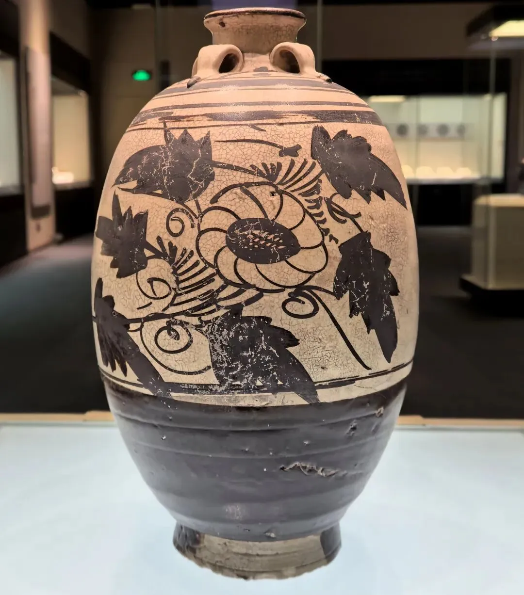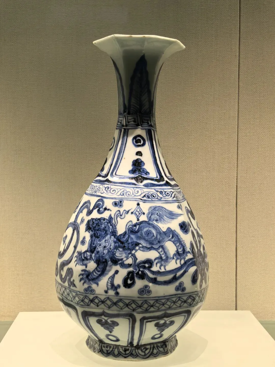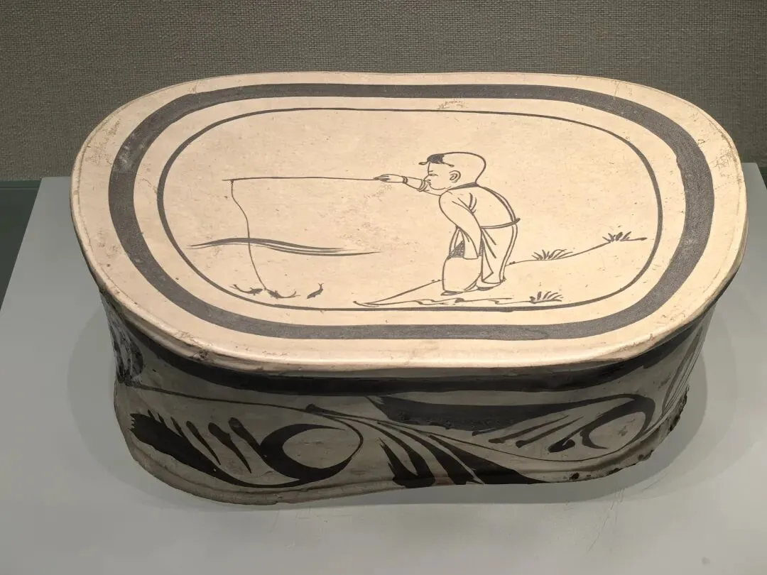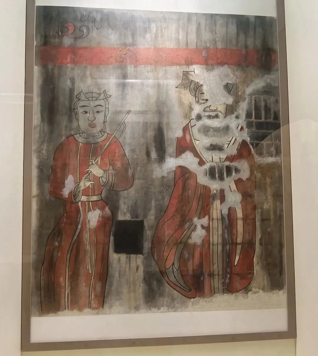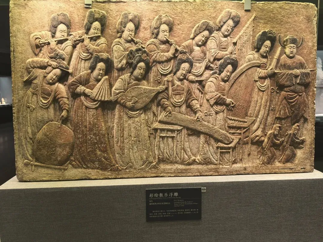 凤首壶是受萨珊波斯和粟特等地金银器中的带把壶影响而发明,流行于唐代。当时著名的窑场如邢窑、定窑、巩义窑烧造的白瓷以及三彩器中都出现过这种造型。壶呈连体双鱼形,鱼嘴是壶口,鱼尾为圈足。两侧贴塑双排鱼鳍,鳍面为凹槽,上下两端各有 定窑早期制品。五瓣花式盘口,胎质细腻,釉色莹润。圈足内划刻"官"字款,表明是官府定烧器物。 宋代定窑以覆烧法烧造瓷器时,因器口紧贴垫圈,形成无釉的"芒口"。为了弥补芒口的缺陷,就用金、银、铜等金属片包镶在口沿处,来美化器物。白釉刻花莲瓣纹长颈瓶 宋代 定州静志寺塔基地宫出土 胎质洁白细腻,釉色白中泛黄,积釉处有"泪痕"。盘内满印缠枝莲和折枝莲纹。白釉印花是宋金时期定窑最具代表性的产品,借鉴了当时名扬天下的定州缂丝艺术,构图严谨,满而不乱。 画面简洁空灵,寥寥数笔,将恬静的乡村景象和儿童天真可爱的神态表现得淋漓尽致。瓷枕底部压印"张家枕"戳记。青花釉里红开光贴花盖罐 元代 保定永华南路小学出土(镇馆之宝) 1964年,保定市永华南路小学元代窖藏出土了11件瓷器,有青花瓷、卵白釉瓷和蓝釉描金瓷器,是国内首次发现的成批元代青花瓷。青花釉里红开光贴花盖罐造型浑厚,青花浓艳,装饰花纹达10余层,集绘画、浮雕、贴塑、青花、釉里红等多种技法之大成,是存世元青花中的顶级艺术珍品。青花海水龙纹八棱带盖梅瓶 元代 保定永华南路小学出土 肩、颈部饰如意云纹,云纹内有花卉、凤鸟及怪兽。腹部龙纹采用"留白"手法装饰,四条白龙在蓝色海浪中遨游翻腾,别有意趣。 蓝釉描金,是元代景德镇创造的特殊装饰技法。先用高温烧制成蓝釉器物,而后用金彩描绘纹饰,再入窑炉低温烘烤。元代蓝釉瓷器仅存世10余件,描金器物更为罕见,是元瓷中的精品。青花双狮戏球纹八棱玉壶春瓶 元代 保定永华南路小学出土 北朝壁画:壁画是最早的绘画形式之一,自古及今,盛衰有时,不绝如缕。今人谈壁画,言者必称汉唐。殊不知北朝壁画的艺术水平其实不在汉唐之下,只不过被历史长久地湮没了。上世纪50年代以来,河北省境内陆续发现了一批北朝墓葬,其中东魏茹茹公主墓、元祜墓,北齐高洋墓、高润墓、高孝绪墓,均有壁画出土。这些壁画,胡汉交融,奇幻瑰丽,惊世骇俗,独具异彩,上承大汉遗风,下开盛唐先声,用线自由飞动,挥洒自如,有满壁风动之感,展现了北朝绘画艺术的巨大成就。此期,奉献给观众的即是北朝壁画的部分精品原件,以及为使观众更清楚的观看而按原件绘制的临摹品。 散乐图有人物15人。乐伎丰腴圆润,均梳高,簪珠花、长裙、披帛巾,持笛、琵琶、响板、箜篌(kong hou) 等乐器。司仪戴幌(rm)头,持长杆指挥众女合奏。前有孝子二人。 奉侍图由14人组成。侍女手持壶、托盏、障扇、方盒、拂尘等各种日常生活用具,衣裙飘逸,充满动感。 茹茹公主墓甬道东壁壁画﹣﹣侍卫。壁画宽1.57米,高1.93米,右侧人物头戴平巾帻,身穿广袖红衫,从姿态上看,应是拥剑侍卫;左侧人物头上扎巾,身穿窄袖衫,双手执鞭,应为驭手。 石家庄市博物馆正在展出《墨承风骨 明清华章-石家庄市博物馆藏明清书画精品展》。 壹:明代风雅-承古开新的笔墨意境。明代书画在继承元人传统的基础上,逐渐形成多元化的艺术格局。早期延续宋元遗风,中期以吴门画派、书家的兴起为代表,倡导文人意趣,后期则涌现出追求个性解放、风格奇崛的艺术家。本单元通过展示明代不同时期、不同流派的书画作品,呈现明代艺术承古开新、雅俗共赏的时代风貌。