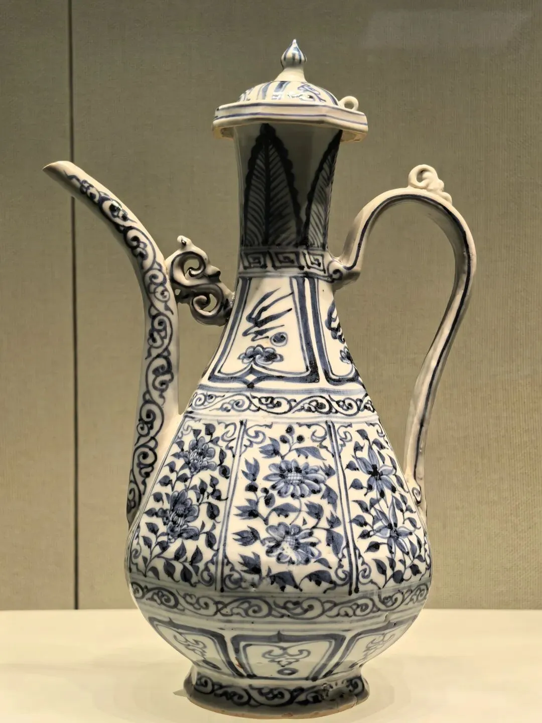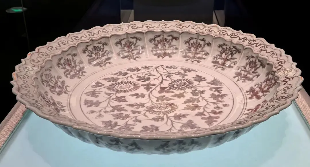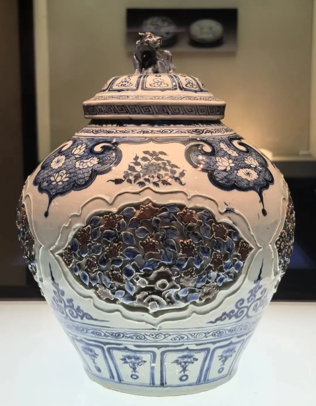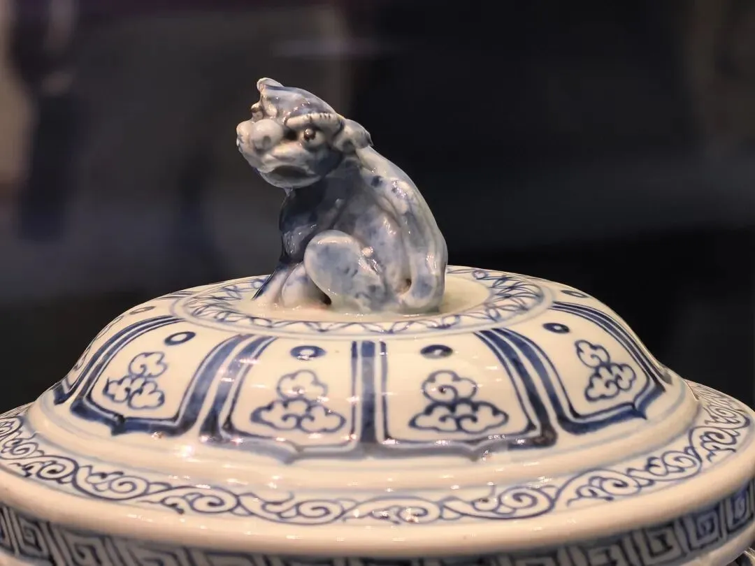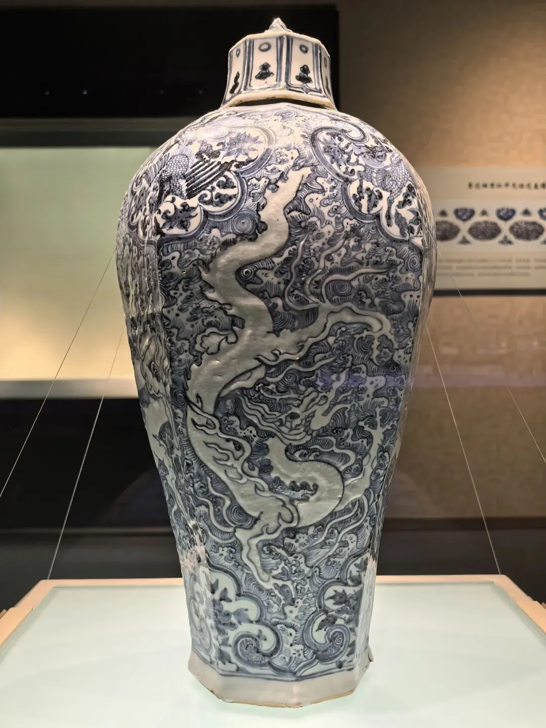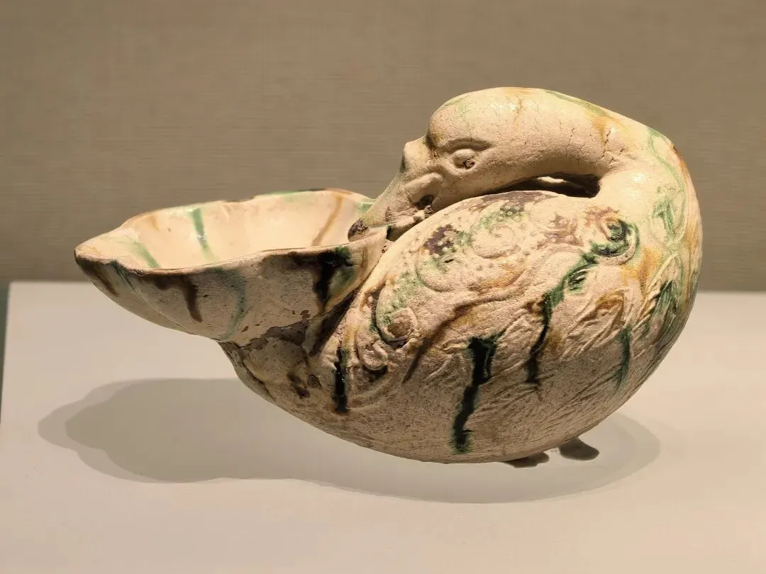 凤首壶是受萨珊波斯和粟特等地金银器中的带把壶影响而发明,流行于唐代。当时著名的窑场如邢窑、定窑、巩义窑烧造的白瓷以及三彩器中都出现过这种造型。壶呈连体双鱼形,鱼嘴是壶口,鱼尾为圈足。两侧贴塑双排鱼鳍,鳍面为凹槽,上下两端各有 定窑早期制品。五瓣花式盘口,胎质细腻,釉色莹润。圈足内划刻"官"字款,表明是官府定烧器物。 宋代定窑以覆烧法烧造瓷器时,因器口紧贴垫圈,形成无釉的"芒口"。为了弥补芒口的缺陷,就用金、银、铜等金属片包镶在口沿处,来美化器物。白釉刻花莲瓣纹长颈瓶 宋代 定州静志寺塔基地宫出土 胎质洁白细腻,釉色白中泛黄,积釉处有"泪痕"。盘内满印缠枝莲和折枝莲纹。白釉印花是宋金时期定窑最具代表性的产品,借鉴了当时名扬天下的定州缂丝艺术,构图严谨,满而不乱。 画面简洁空灵,寥寥数笔,将恬静的乡村景象和儿童天真可爱的神态表现得淋漓尽致。瓷枕底部压印"张家枕"戳记。青花釉里红开光贴花盖罐 元代 保定永华南路小学出土(镇馆之宝) 1964年,保定市永华南路小学元代窖藏出土了11件瓷器,有青花瓷、卵白釉瓷和蓝釉描金瓷器,是国内首次发现的成批元代青花瓷。青花釉里红开光贴花盖罐造型浑厚,青花浓艳,装饰花纹达10余层,集绘画、浮雕、贴塑、青花、釉里红等多种技法之大成,是存世元青花中的顶级艺术珍品。青花海水龙纹八棱带盖梅瓶 元代 保定永华南路小学出土 肩、颈部饰如意云纹,云纹内有花卉、凤鸟及怪兽。腹部龙纹采用"留白"手法装饰,四条白龙在蓝色海浪中遨游翻腾,别有意趣。 蓝釉描金,是元代景德镇创造的特殊装饰技法。先用高温烧制成蓝釉器物,而后用金彩描绘纹饰,再入窑炉低温烘烤。元代蓝釉瓷器仅存世10余件,描金器物更为罕见,是元瓷中的精品。青花双狮戏球纹八棱玉壶春瓶 元代 保定永华南路小学出土 北朝壁画:壁画是最早的绘画形式之一,自古及今,盛衰有时,不绝如缕。今人谈壁画,言者必称汉唐。殊不知北朝壁画的艺术水平其实不在汉唐之下,只不过被历史长久地湮没了。上世纪50年代以来,河北省境内陆续发现了一批北朝墓葬,其中东魏茹茹公主墓、元祜墓,北齐高洋墓、高润墓、高孝绪墓,均有壁画出土。这些壁画,胡汉交融,奇幻瑰丽,惊世骇俗,独具异彩,上承大汉遗风,下开盛唐先声,用线自由飞动,挥洒自如,有满壁风动之感,展现了北朝绘画艺术的巨大成就。此期,奉献给观众的即是北朝壁画的部分精品原件,以及为使观众更清楚的观看而按原件绘制的临摹品。 散乐图有人物15人。乐伎丰腴圆润,均梳高,簪珠花、长裙、披帛巾,持笛、琵琶、响板、箜篌(kong hou) 等乐器。司仪戴幌(rm)头,持长杆指挥众女合奏。前有孝子二人。 奉侍图由14人组成。侍女手持壶、托盏、障扇、方盒、拂尘等各种日常生活用具,衣裙飘逸,充满动感。 茹茹公主墓甬道东壁壁画﹣﹣侍卫。壁画宽1.57米,高1.93米,右侧人物头戴平巾帻,身穿广袖红衫,从姿态上看,应是拥剑侍卫;左侧人物头上扎巾,身穿窄袖衫,双手执鞭,应为驭手。 石家庄市博物馆正在展出《墨承风骨 明清华章-石家庄市博物馆藏明清书画精品展》。 壹:明代风雅-承古开新的笔墨意境。明代书画在继承元人传统的基础上,逐渐形成多元化的艺术格局。早期延续宋元遗风,中期以吴门画派、书家的兴起为代表,倡导文人意趣,后期则涌现出追求个性解放、风格奇崛的艺术家。本单元通过展示明代不同时期、不同流派的书画作品,呈现明代艺术承古开新、雅俗共赏的时代风貌。