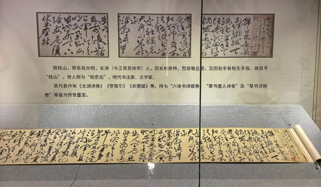 祝枝山,原名祝允明,长洲(今江苏苏州市)人,因长相奇特,而自嘲丑陋,又因右手有枝生手指,故自号"枝山",世人称为"祝京兆",明代书法家、文学家。其代表作有《太湖诗卷》、《箜篌引》、《赤壁赋》等。所书"六体书诗赋卷"等皆为传世墨宝。
