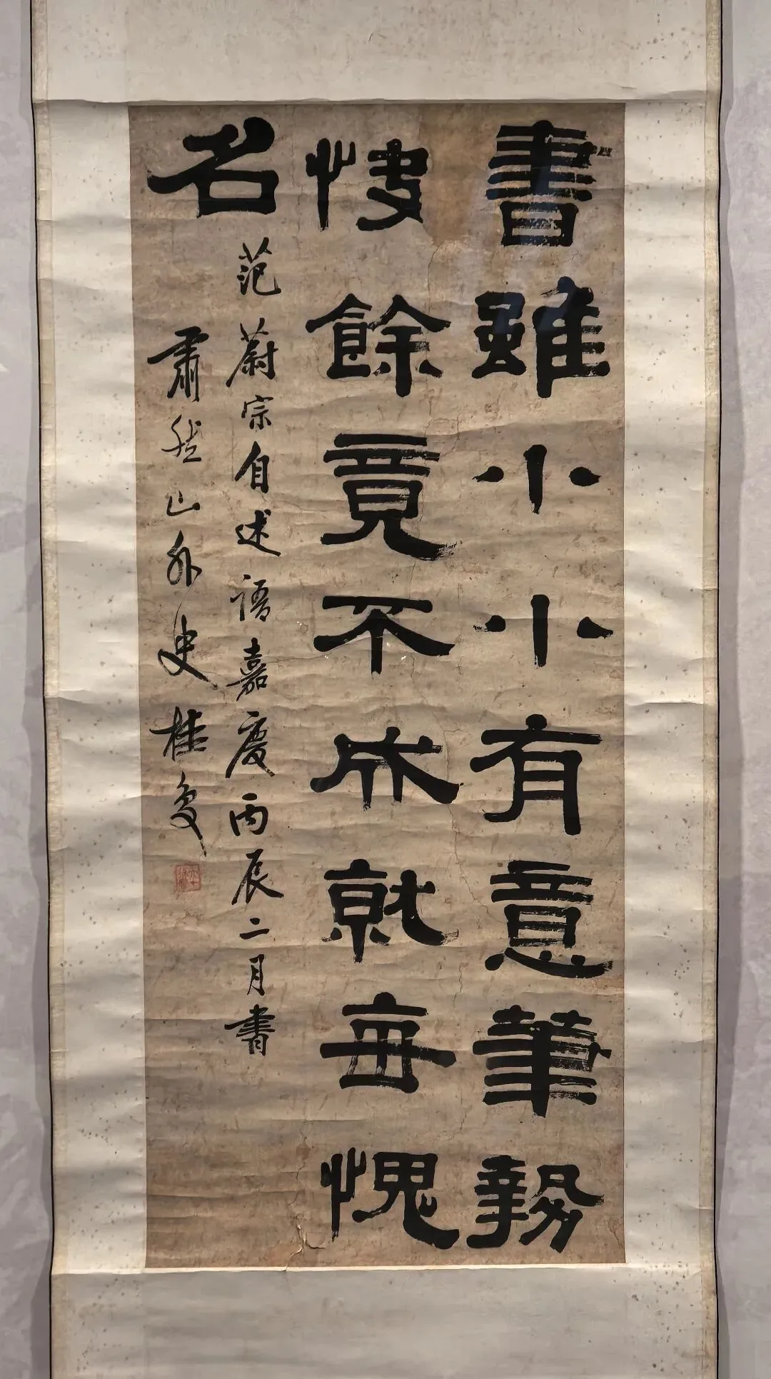 貮:清代遗韵-承袭与生发的多工样探索。清初画坛,既有"四王"等秉承董其昌衣钵、力主摹古的正统派画家,也有"四僧"等遗民画家强调抒写个性、风格奇崛的非主流画家。书坛则在延续帖学传统的同时,孕育着变革的因子。本单元展示了清初至中期、乾嘉时期部分书法作品,可见其时艺术创作在承袭传统与个性生发之间的多样探索。