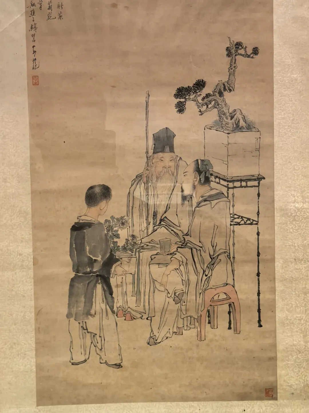 钱慧安(1833~1911年),宝山(今属上海)人,初名贵昌,字吉生,号清溪樵子。善人物仕女,力追仇英,间作花卉,山水亦善。宣统年间,卖画上海,名重一时,为"海上画派"著名画家。此图作于光绪五年(1879年)。
