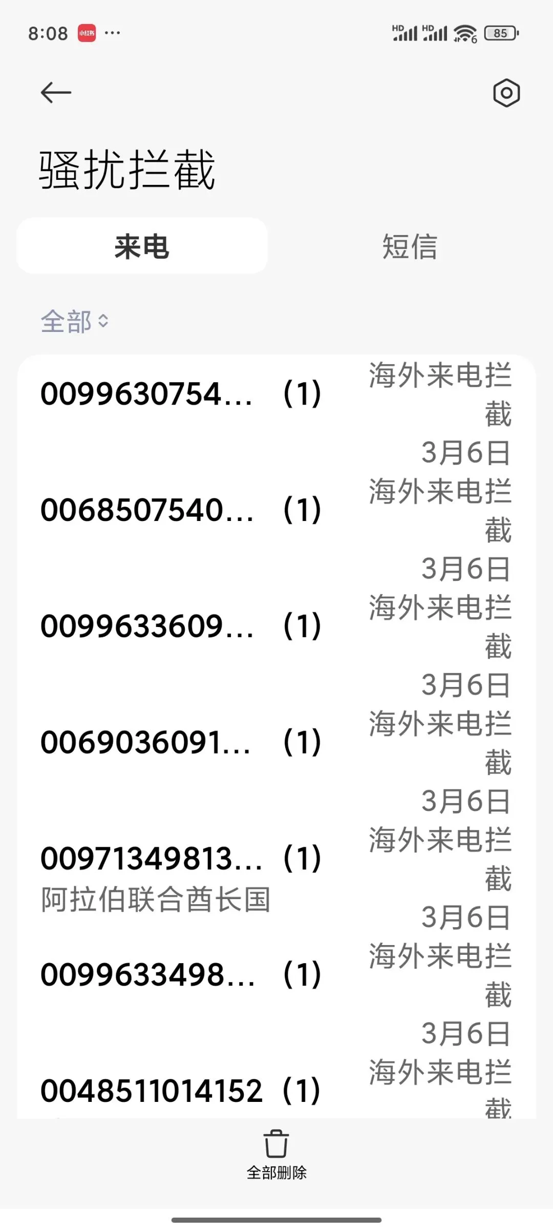 整整7个海外电话,全部被系统挡下来了!