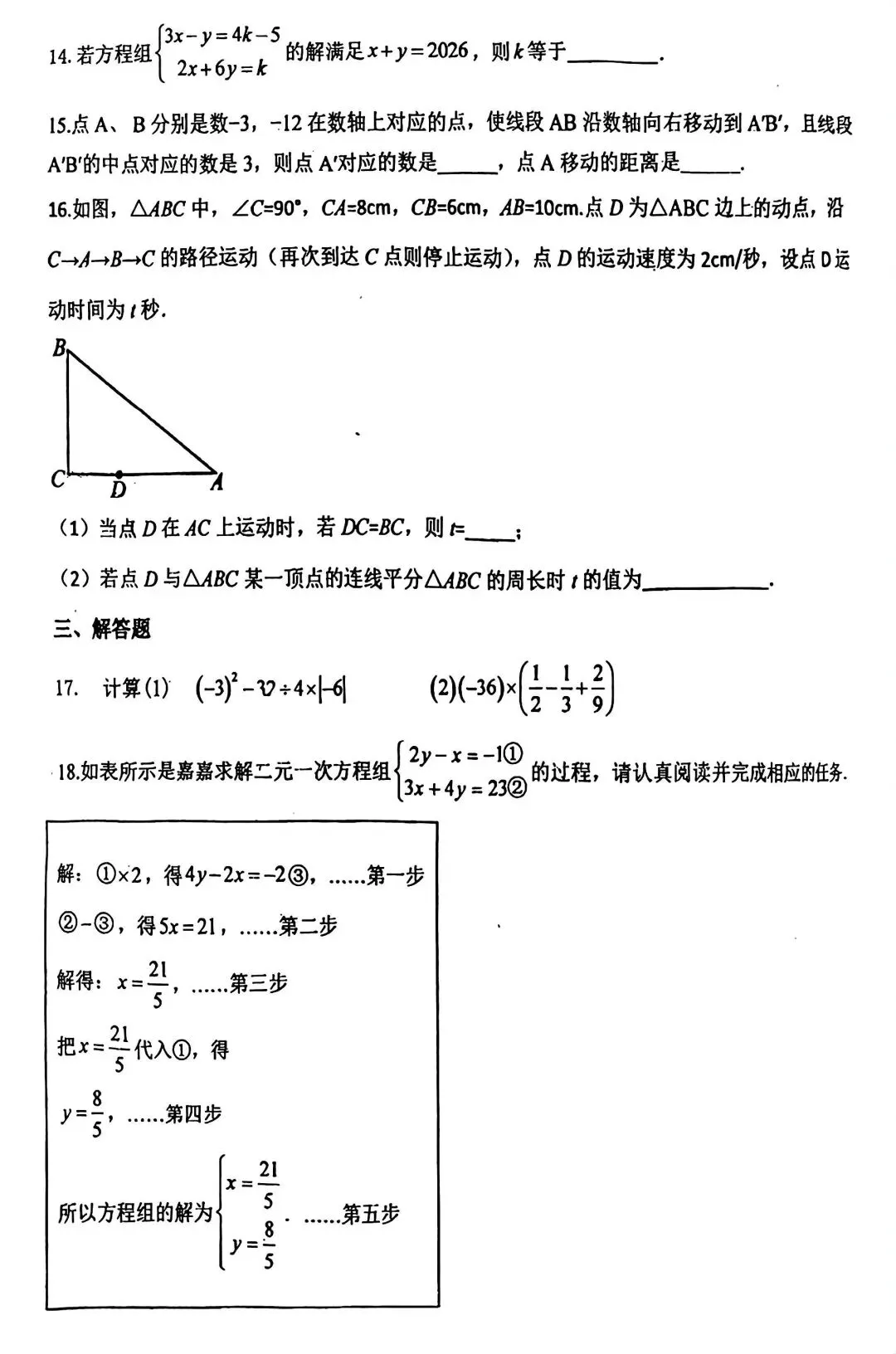 2026年3月石家庄裕华区外国语教育集团八年级寒假返校数学测试卷