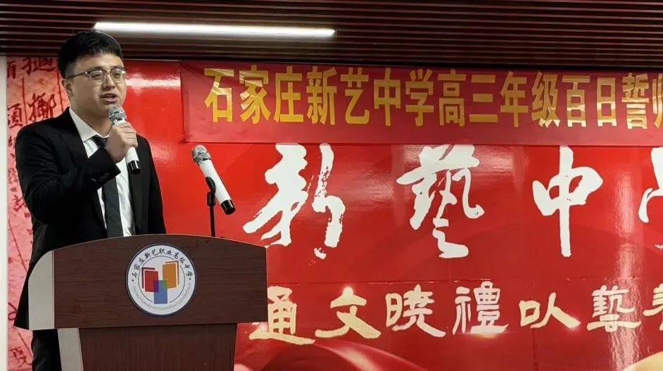 春和景明,惠风送暖;百日铿锵,逐梦启航。当高考倒计时定格在 100 天,青春誓言响彻校园上空,在高三年级副主任李腾博老师的主持下,石家庄新艺中学 2023 届高三百日誓师大会隆重举行。全体高三师生与家长齐聚一堂,以奋进之姿再启新程,共同吹响高考冲刺的冲锋号角。