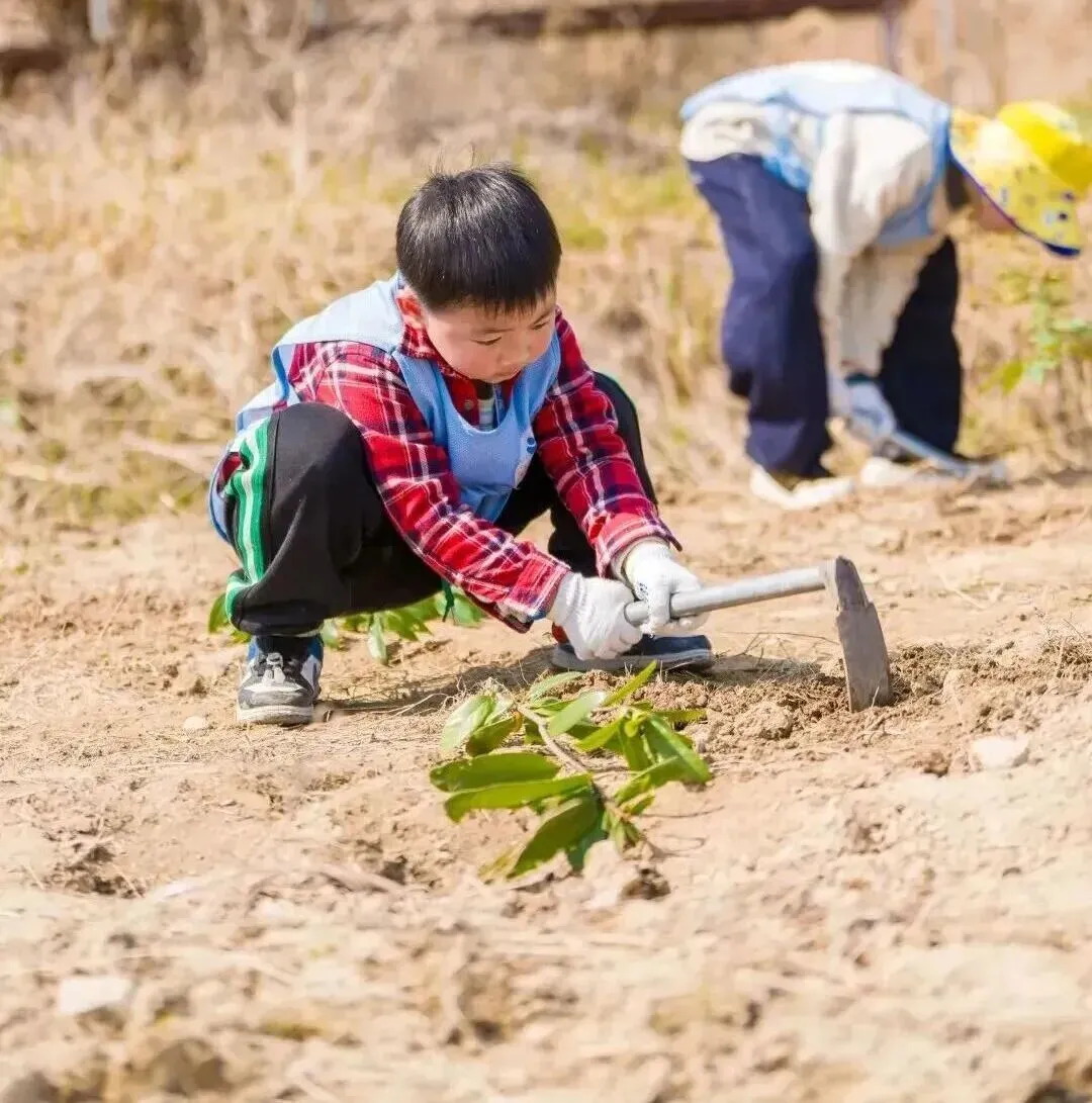 多年后,当孩子与树都长大他们会记得这个春天——是四只手同时握住了泥土两只小的,两只绿的