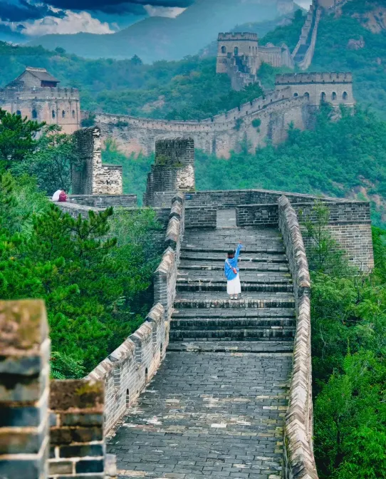 拍照的话,别大中午顶着日头拍。等到下午四五点,去金山岭。这时候光线变软了,侧逆光打在残破的砖墙上,能把那种沧桑感镀一层金边。这时候拍人,脸上的轮廓都温柔了几分。