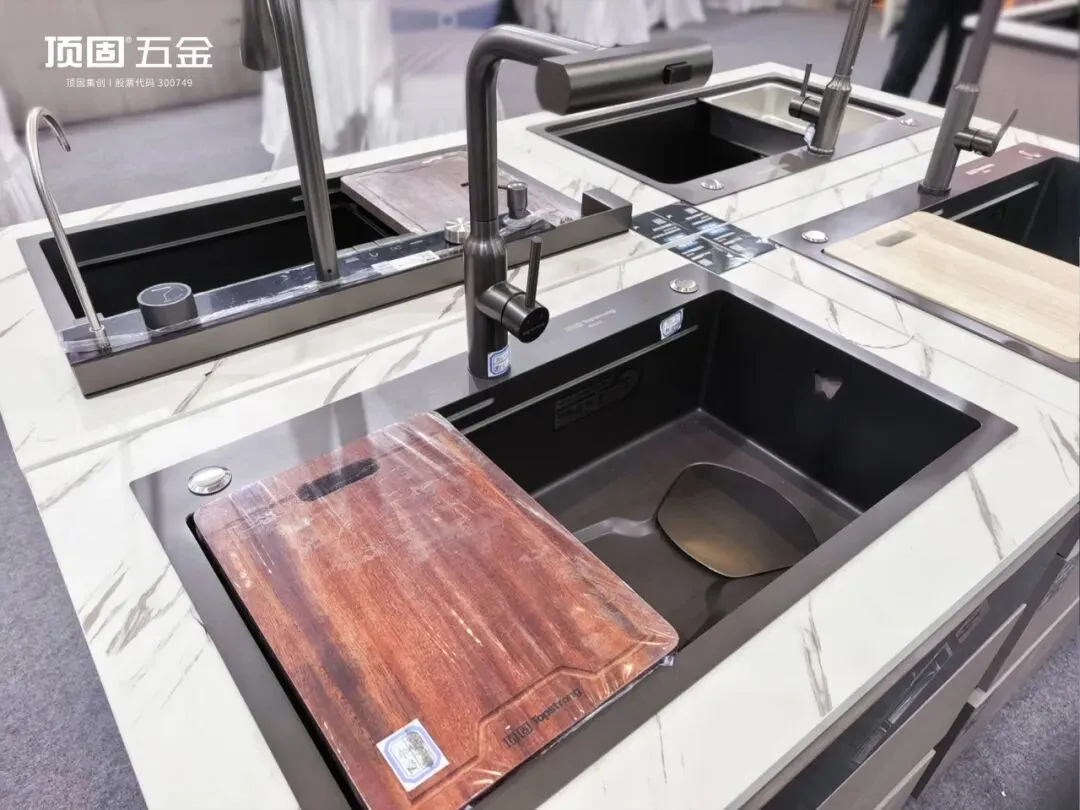 顶固五金水槽龙头则从实用功能的维度,重塑现代家居生活体验。以云贝系列304不锈钢水槽例,巧妙借鉴贝壳弧度实现高效自洁导流,减少积水残留;PVD纳米涂层结合3D石纹肌理,硬度显著提升,无惧日常刮蹭留痕;搭配304不锈钢抽拉龙头,抽拉顺滑、回位精准,轻松解锁愉悦的清洗体验,开启厨房空间的无限可能。