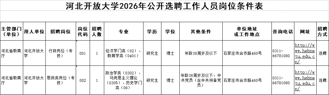 · 河北开放大学2026年公开选聘2名工作人员公告