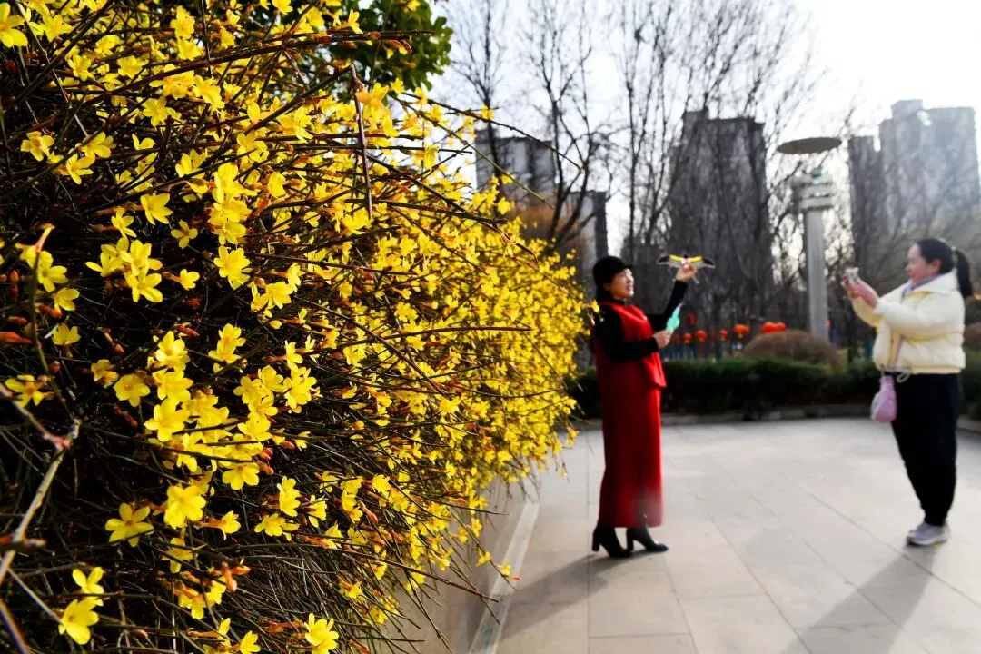 人民公园的迎春花开了。李明发 摄