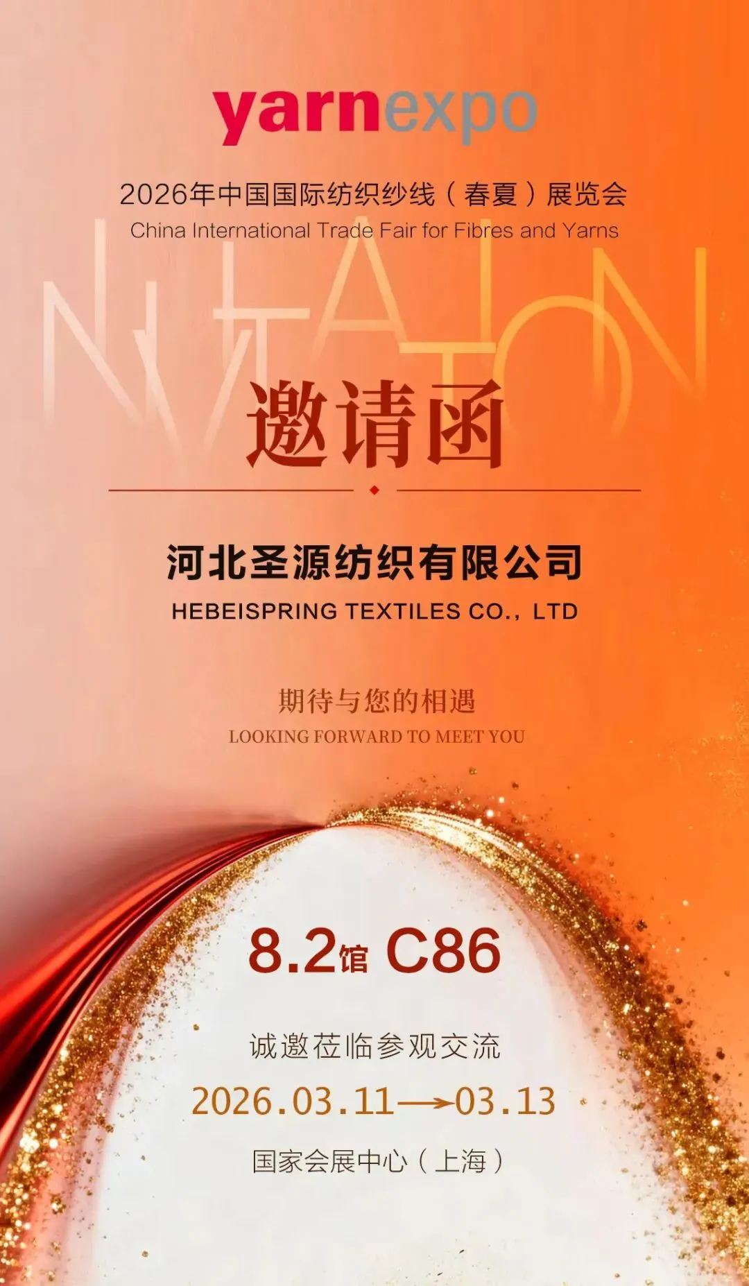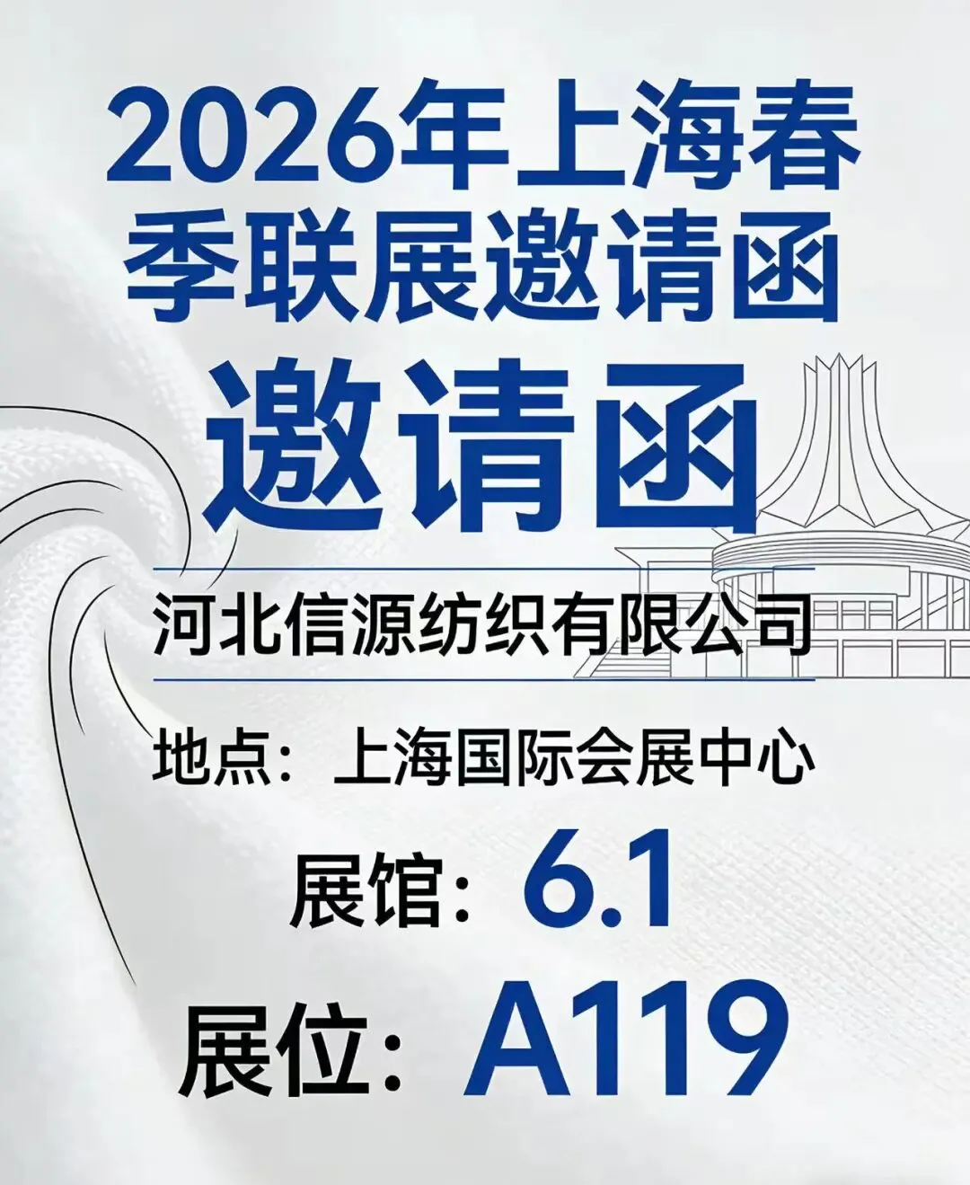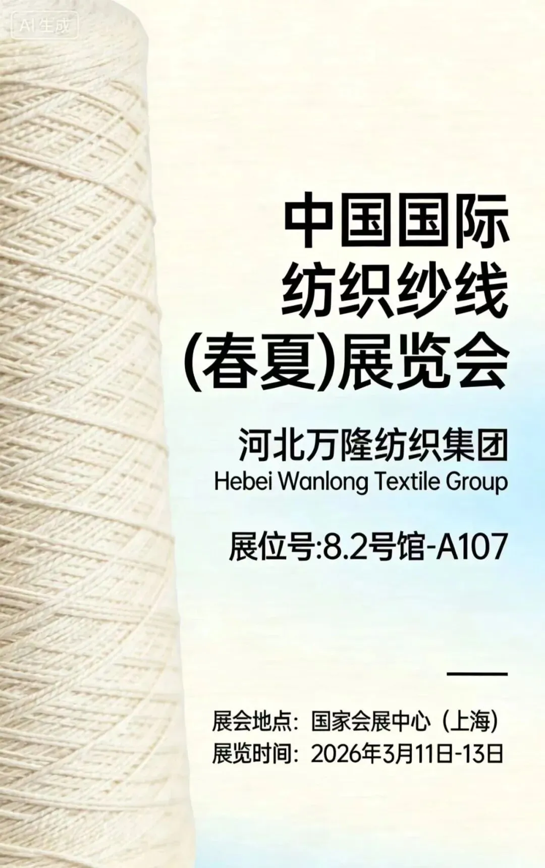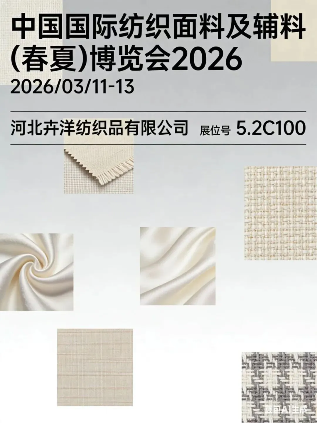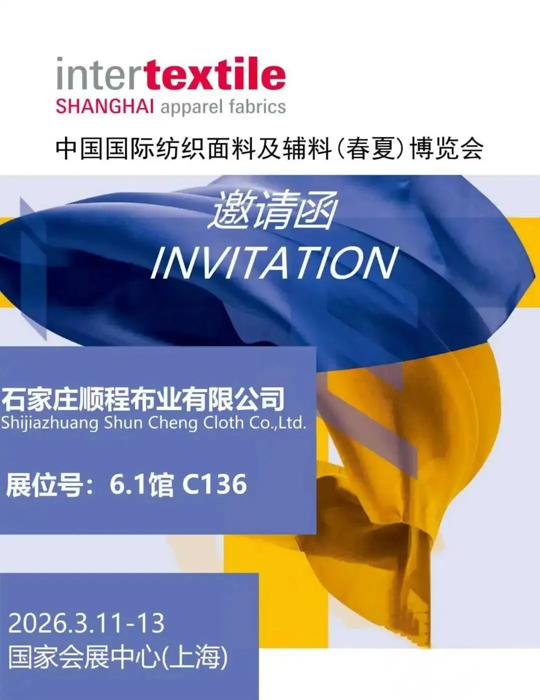 春潮涌动,万物竞发。2026年3月11日至13日,中国纺织工业联合会春季联展将再度于国家会展中心(上海)举办。本届联展汇聚五大专业展会——中国国际纺织面料及辅料(春夏)博览会、中国国际服装服饰博览会(春季)、中国国际家用纺织品及辅料(春夏)博览会、中国国际纺织纱线(春夏)展览会及中国国际针织(春夏)博览会,形成覆盖纺织全产业链的综合性行业平台。石家庄市51家纺织服装企业蓄势待发,将参展2026中国纺联春季联展。欢迎海内外新老客户朋友光临石家庄展位参观洽谈,期待马到成功,共创佳绩。