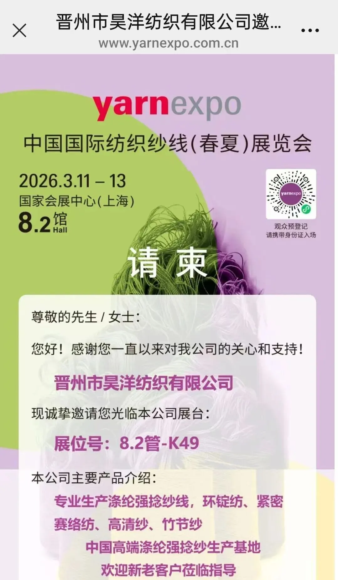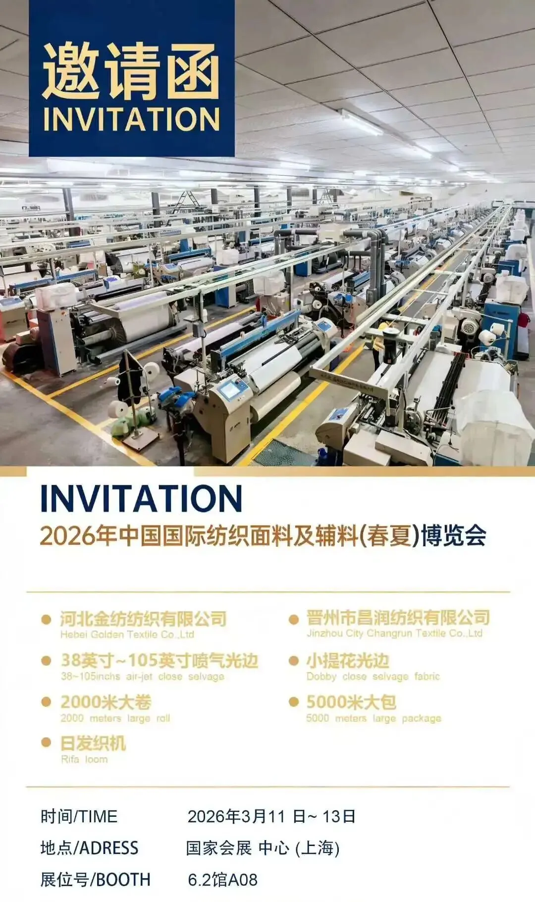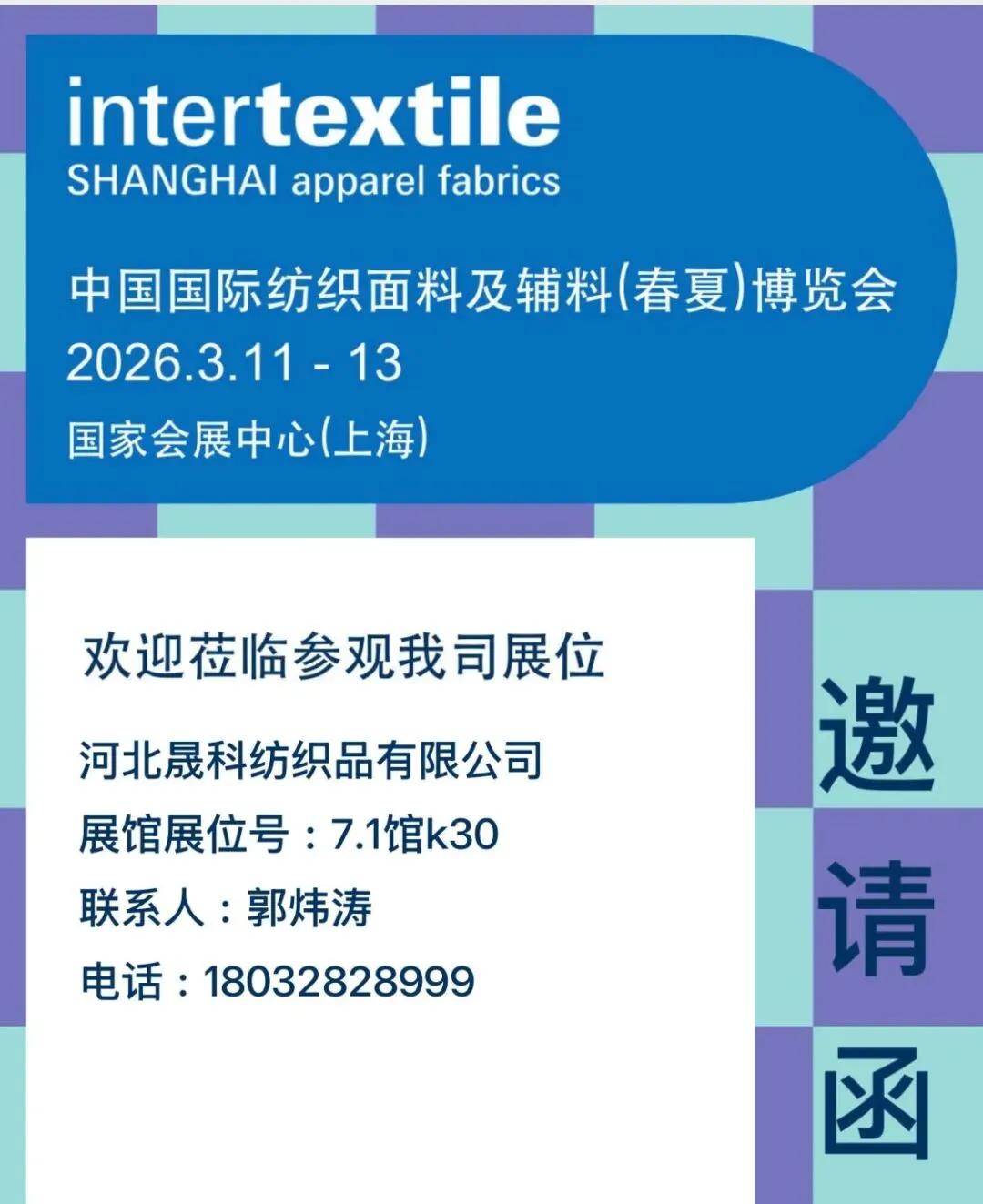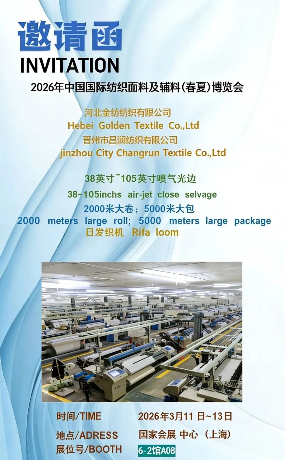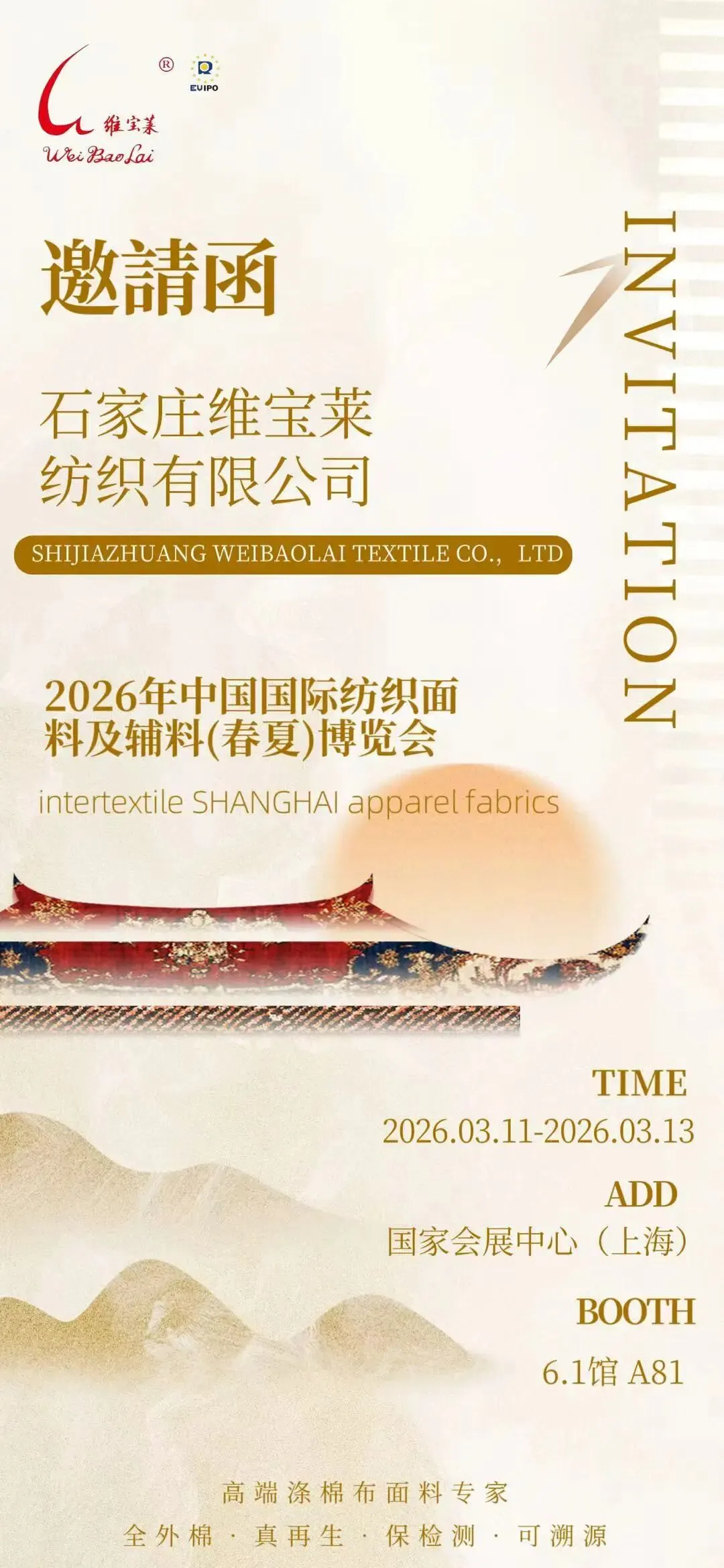 春潮涌动,万物竞发。2026年3月11日至13日,中国纺织工业联合会春季联展将再度于国家会展中心(上海)举办。本届联展汇聚五大专业展会——中国国际纺织面料及辅料(春夏)博览会、中国国际服装服饰博览会(春季)、中国国际家用纺织品及辅料(春夏)博览会、中国国际纺织纱线(春夏)展览会及中国国际针织(春夏)博览会,形成覆盖纺织全产业链的综合性行业平台。石家庄市51家纺织服装企业蓄势待发,将参展2026中国纺联春季联展。欢迎海内外新老客户朋友光临石家庄展位参观洽谈,期待马到成功,共创佳绩。