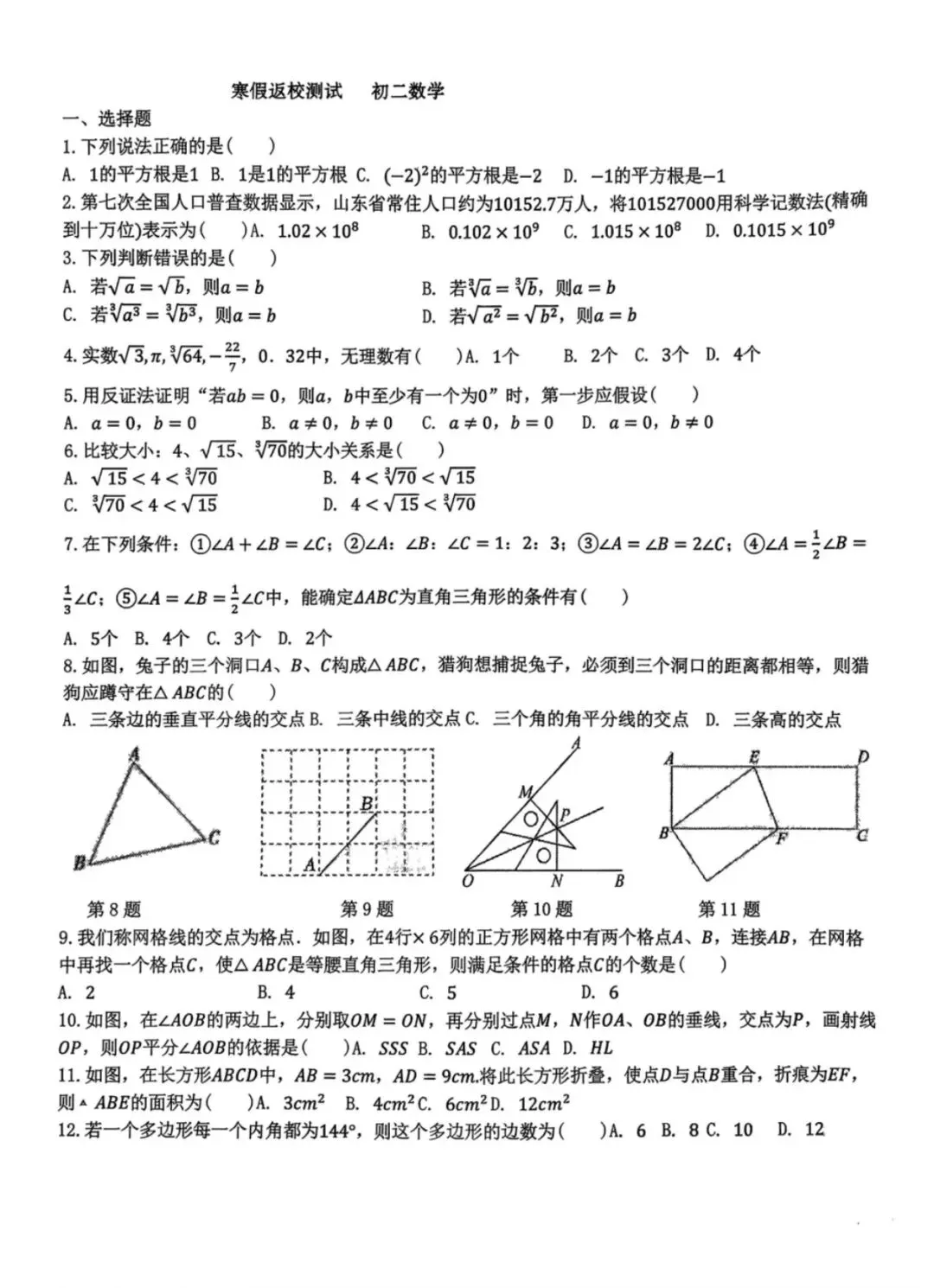 2026.1河北省九年级结课考试数学试卷