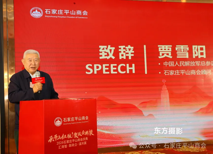 贾雪阳将军专程参会并讲话,他表示,平山是革命老区、西柏坡精神发源地,西柏坡精神是平山人宝贵精神财富与干事创业力量源泉。石家庄平山商会成立以来,始终传承西柏坡红脉,架起政企沟通桥梁、联结企业家纽带,凝聚起强大发展合力。他表示将继续支持商会发展,坚信在党的领导下,企业家们能传承红色基因、勇担时代使命,为平山经济社会高质量发展贡献民营力量。