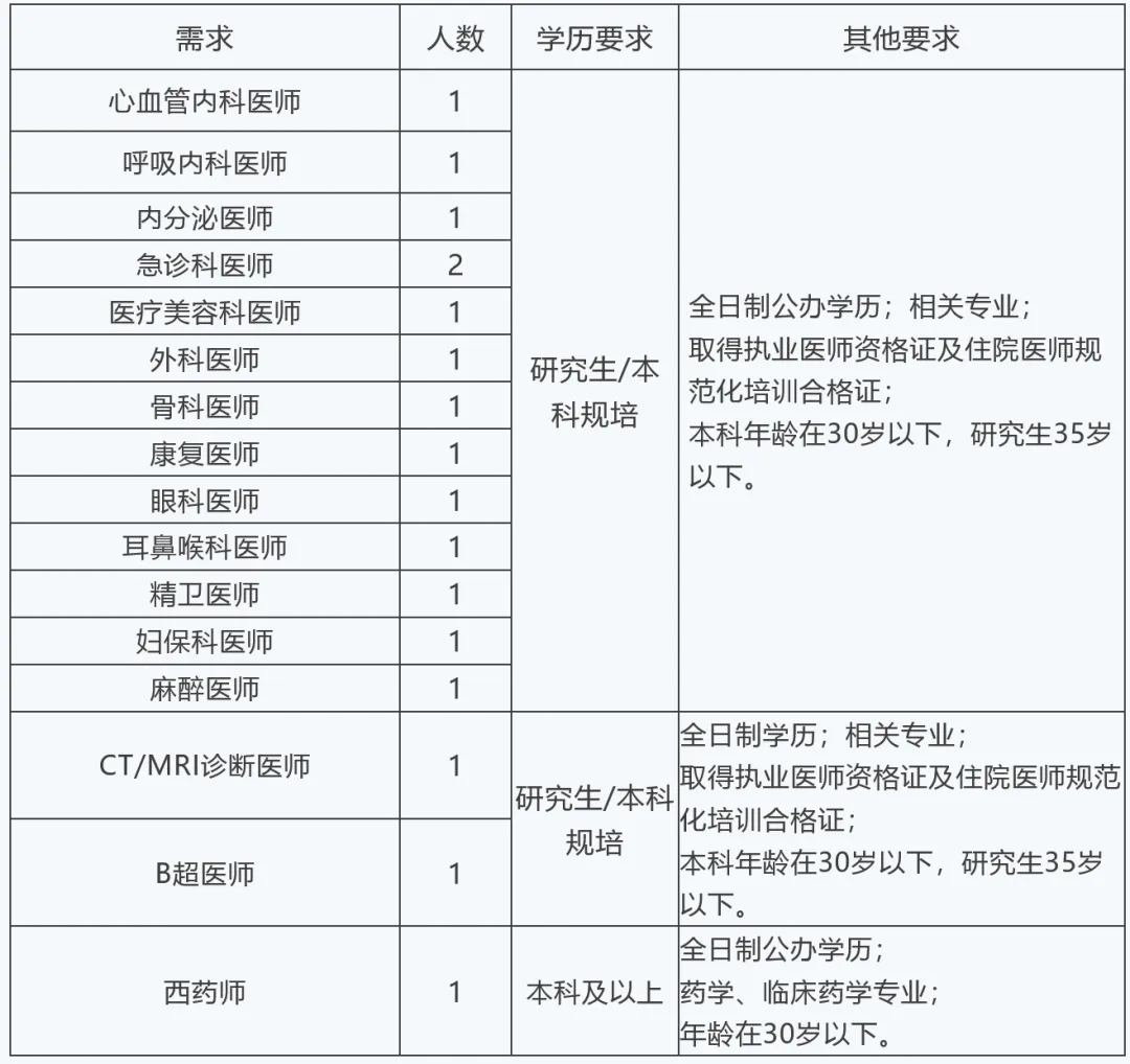 1、医院位于石家庄市中心,本次招聘均为正式职工;