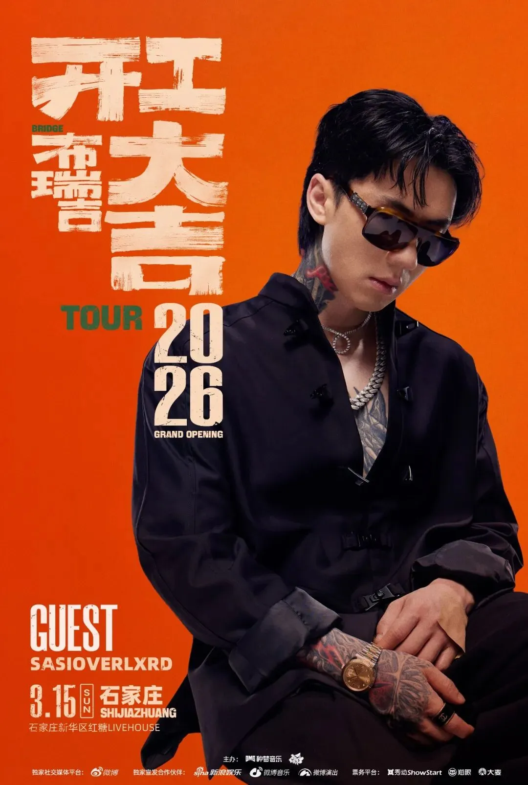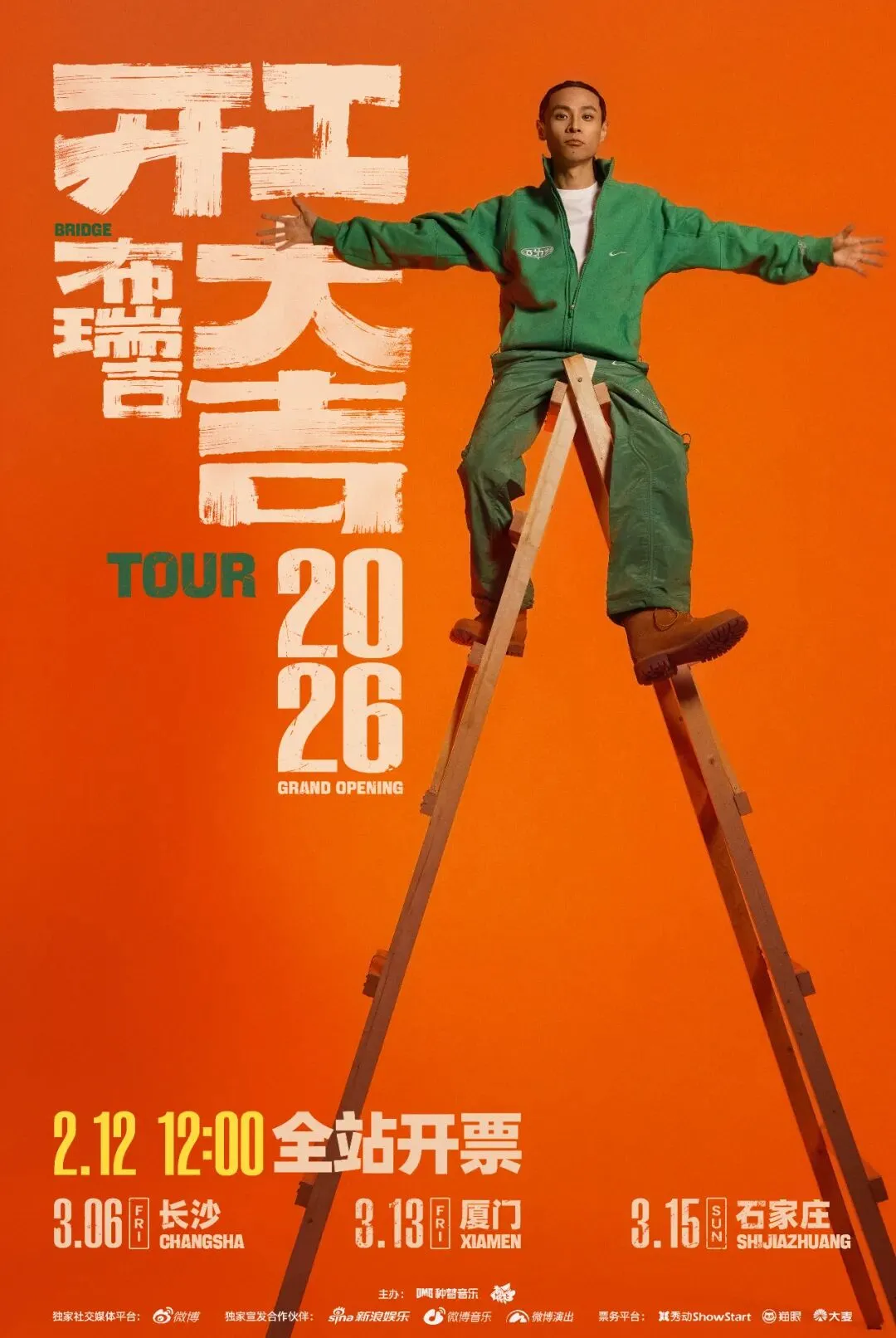 从《023%》到《一脉相承Hood&Family》,在布瑞吉的音乐疆域里,没有格子间,只有无限炸裂的舞台。2026,布瑞吉《开工大吉》巡演带着最燥的现场、最猛的节奏,为你的崭新篇章注入第一波高能LIVE音浪。用最real的勇气与热情,直面未来挑战与掌声。