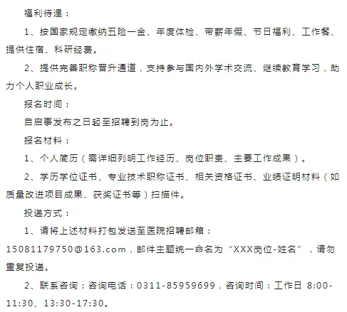 2、医院将对候选人信息严格保密,未进入下一环节者,不再另行通知,应聘材料不予退还。