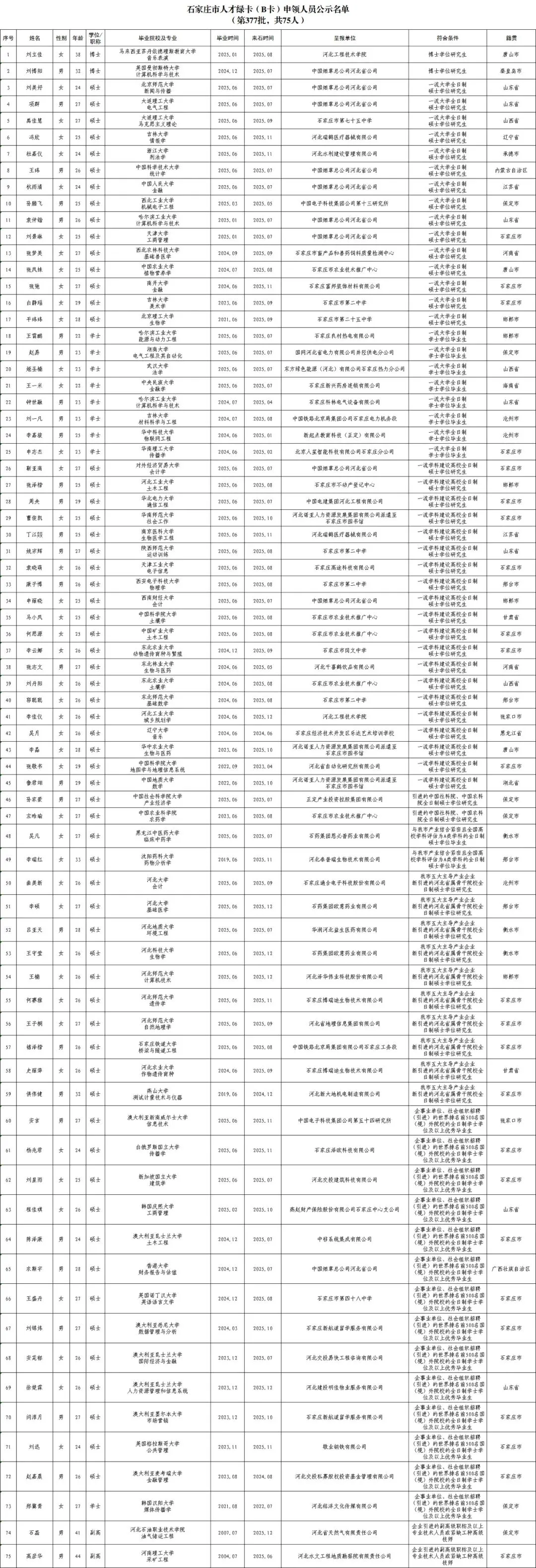 根据《石家庄市人才绿卡(B卡)管理办法(试行)》规定,经过本人申请、网上预审、单位审核、资格复审,拟为申请对象发放人才绿卡(B卡)。
