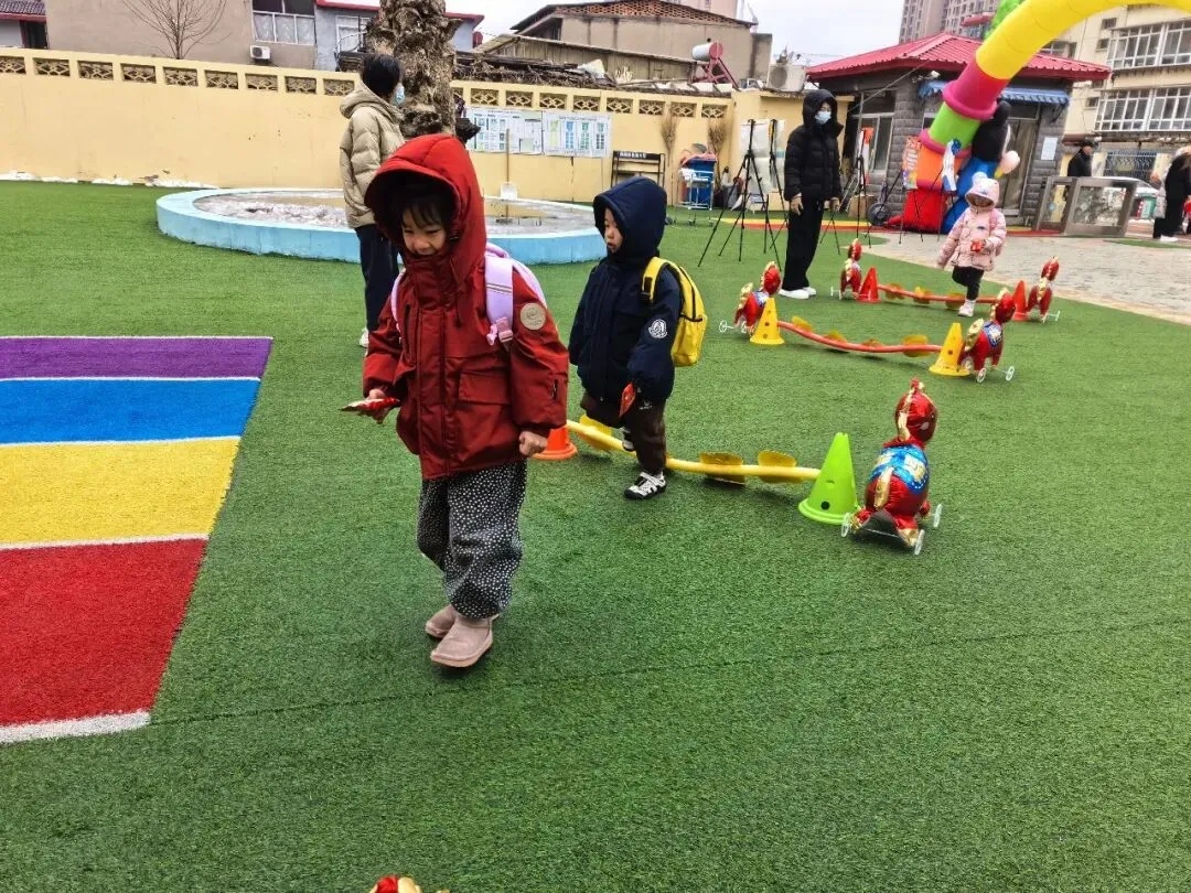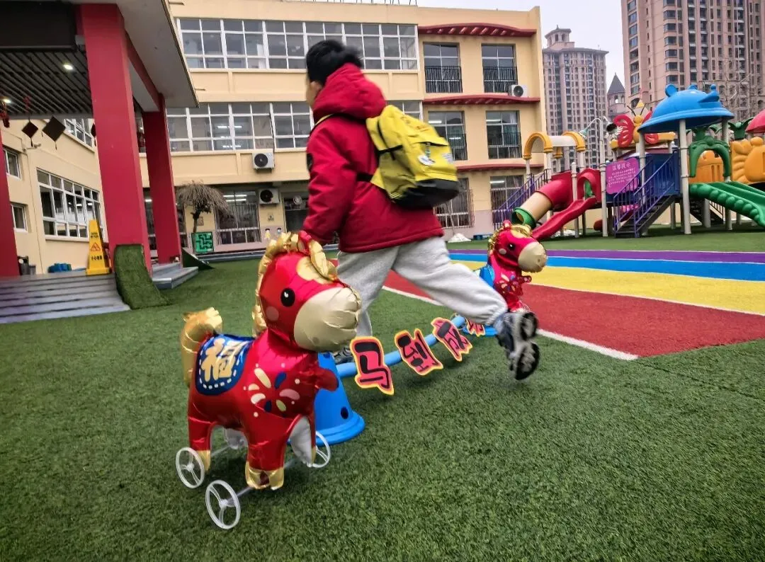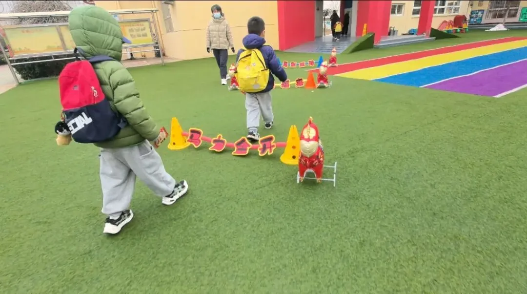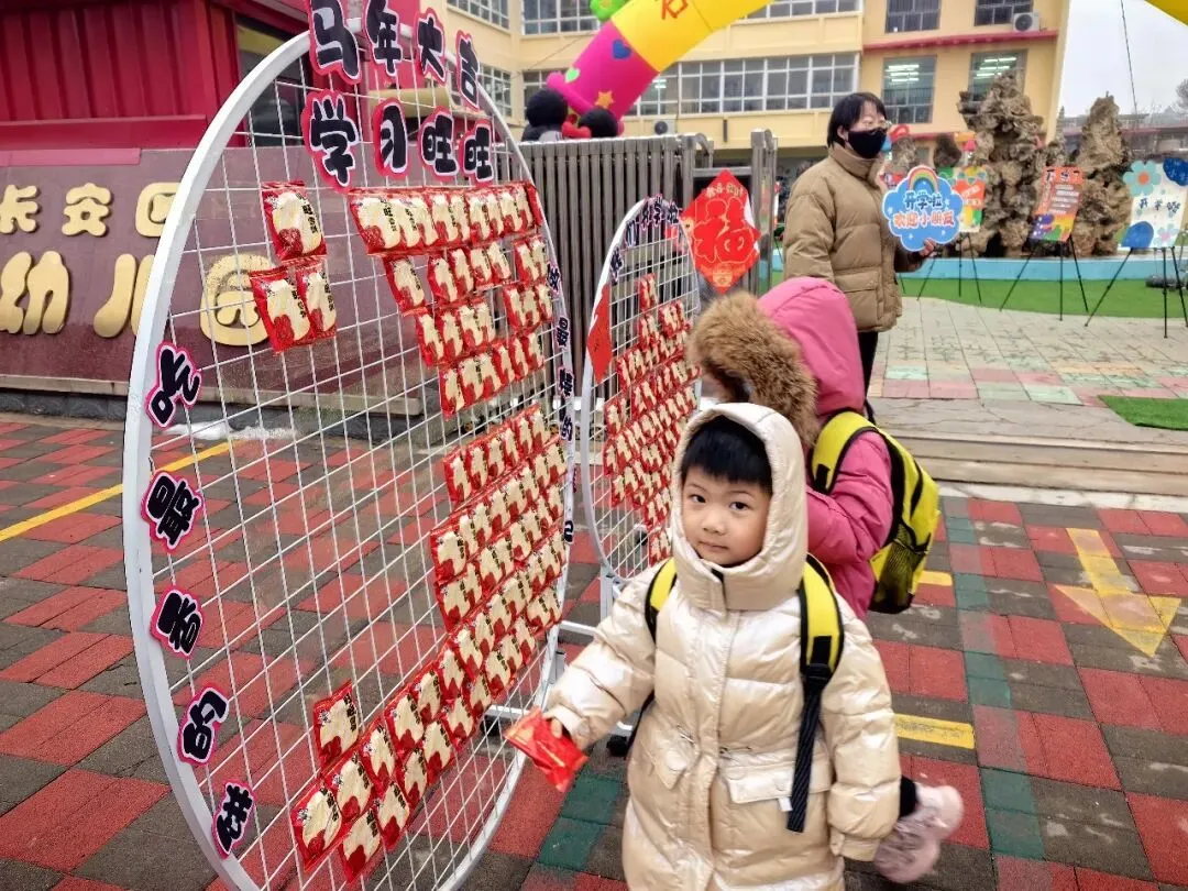 清晨幼儿园内早已装点一新,处处洋溢着喜庆的氛围。老师们在园门口温情迎接孩子入园,一声声亲切的问候,让孩子感受到幼儿园的温暖。门口的旺旺雪饼吸引了孩子们的目光,开心摘取雪饼,在老师的引导下跨越美好寄语的跨栏,寓意新学年“旺上加旺”,在满满的期许中开启新学期的幼儿园生活。