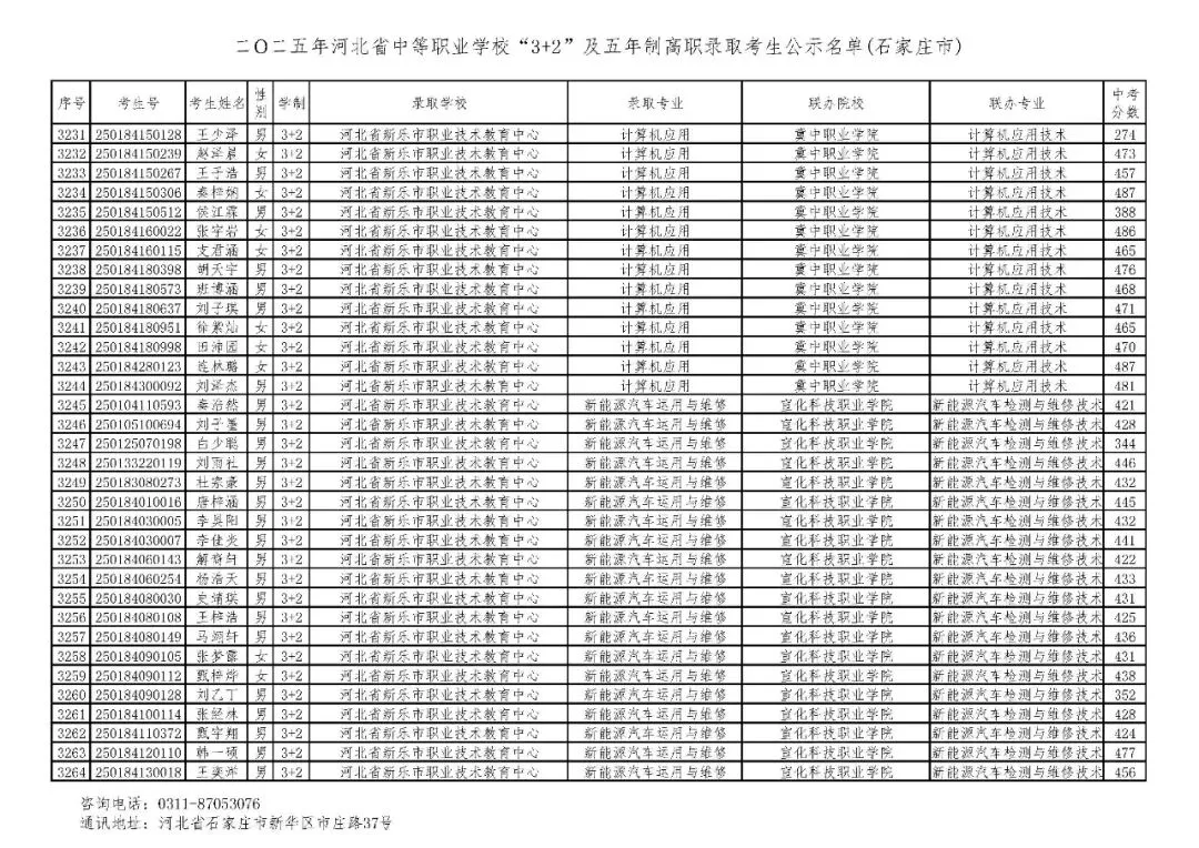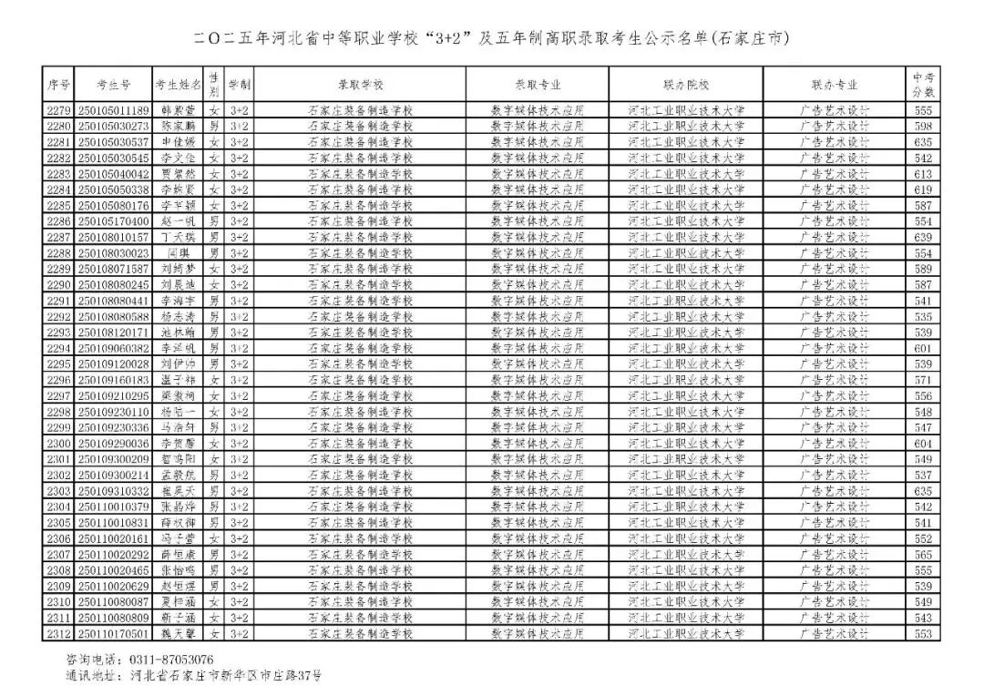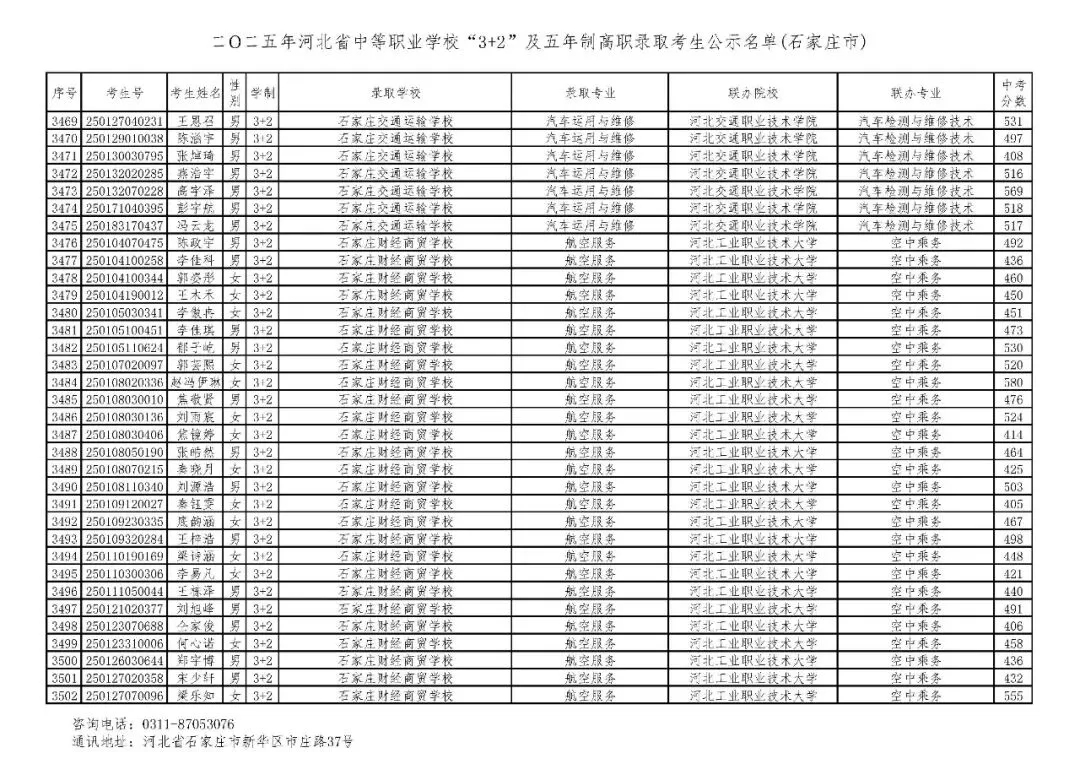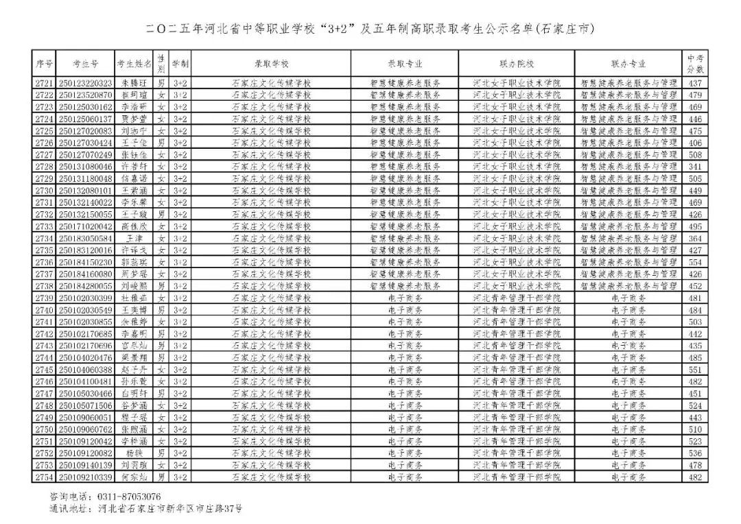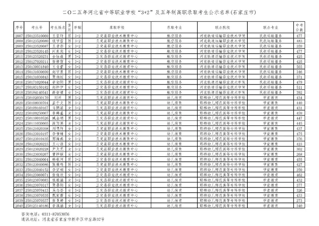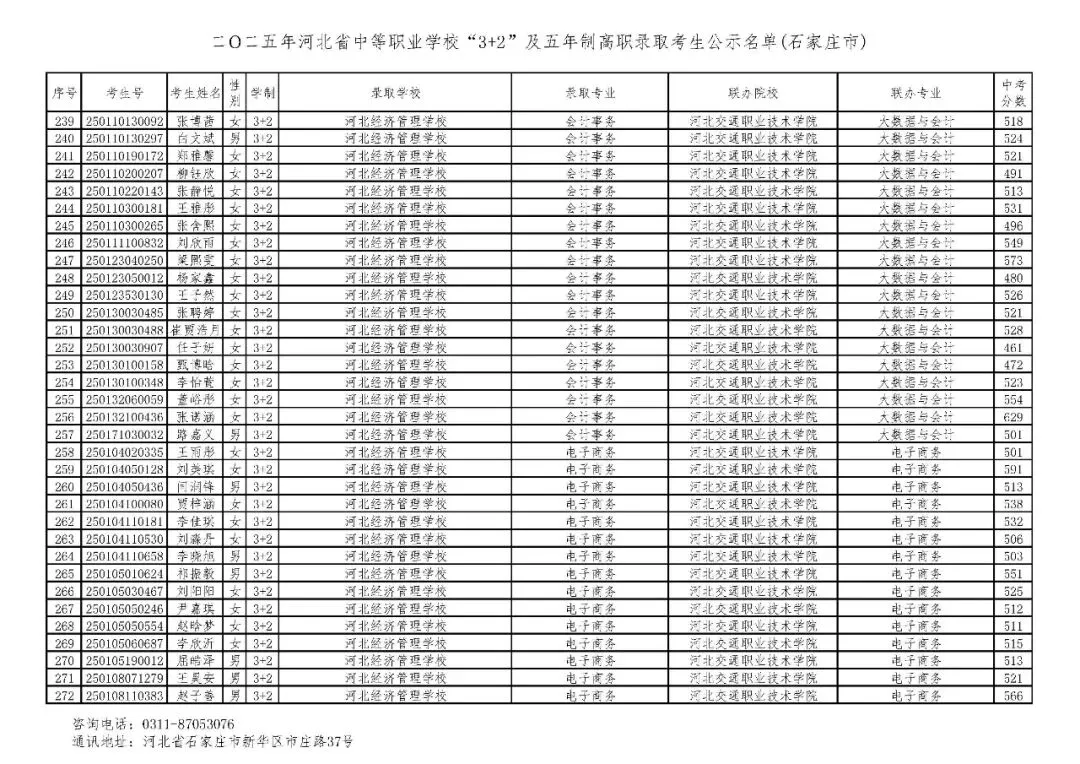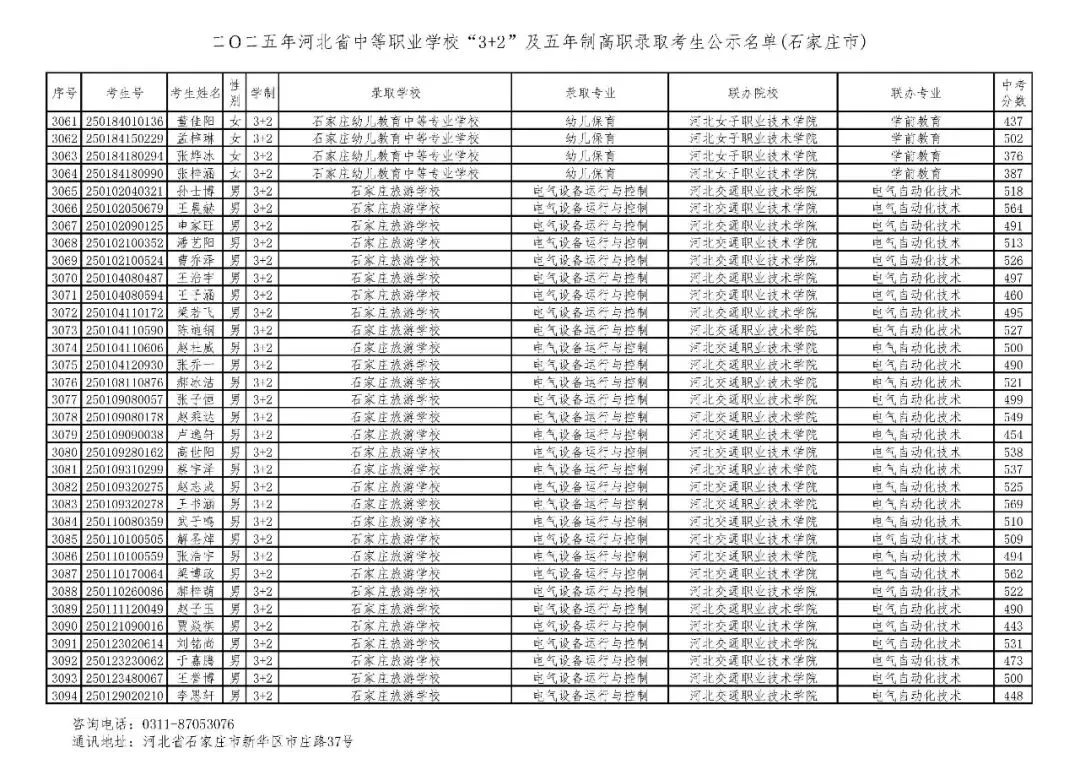 >石家庄市2025年中考,五年一贯制、3+2录取分数线