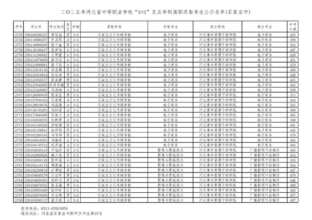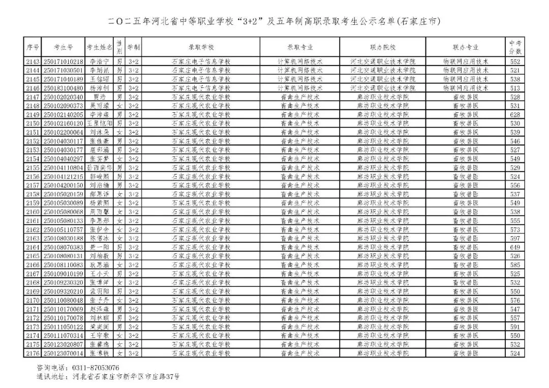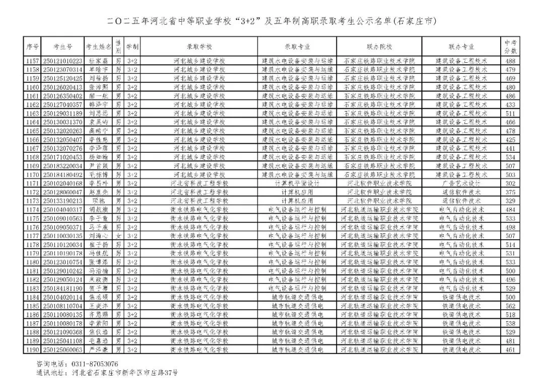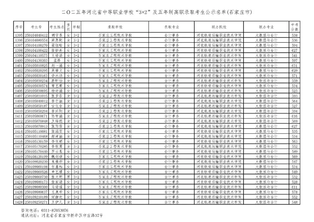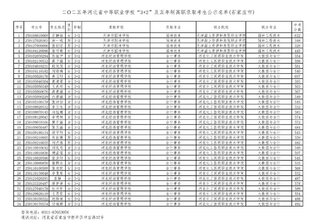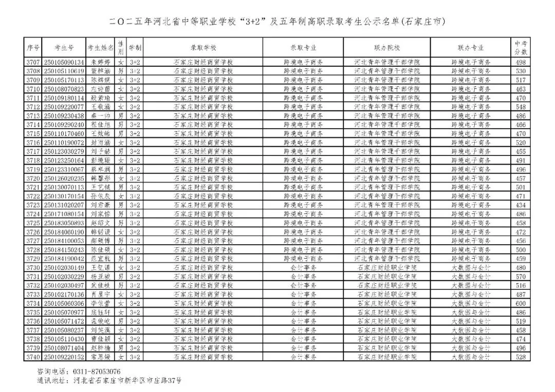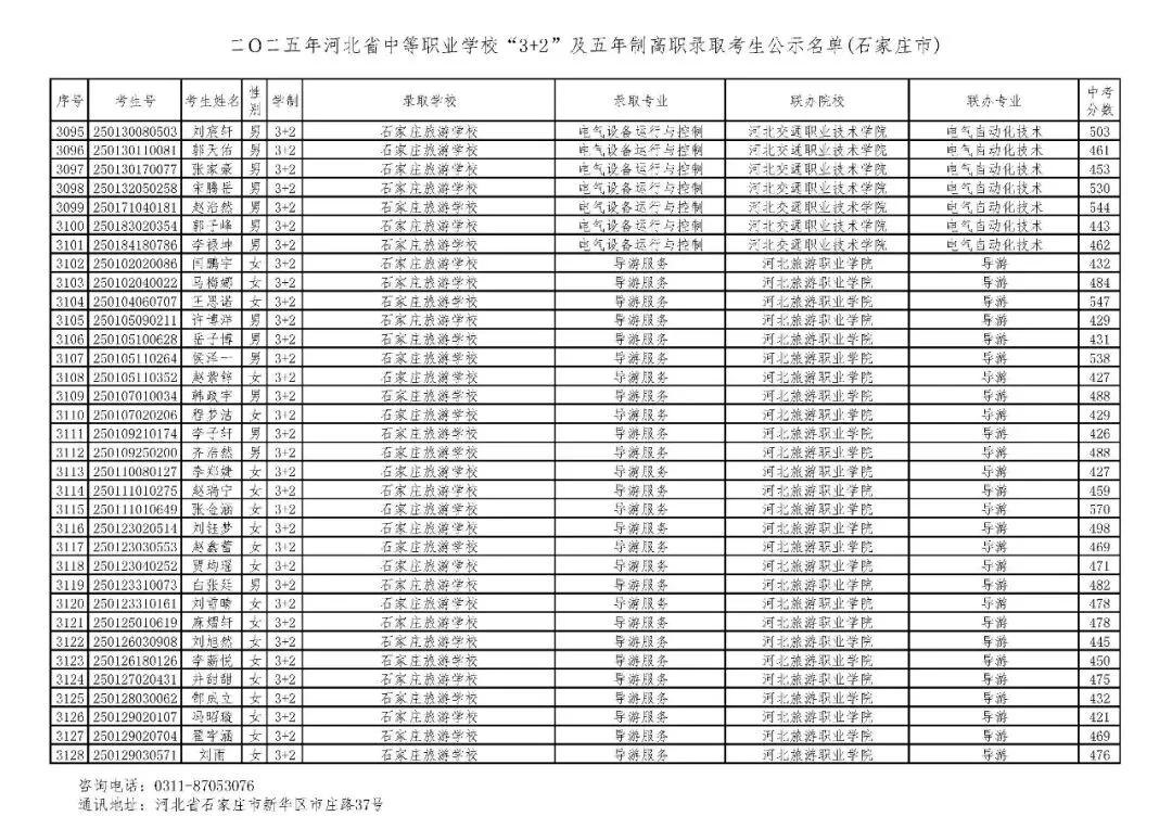 >石家庄市2025年中考,五年一贯制、3+2录取分数线