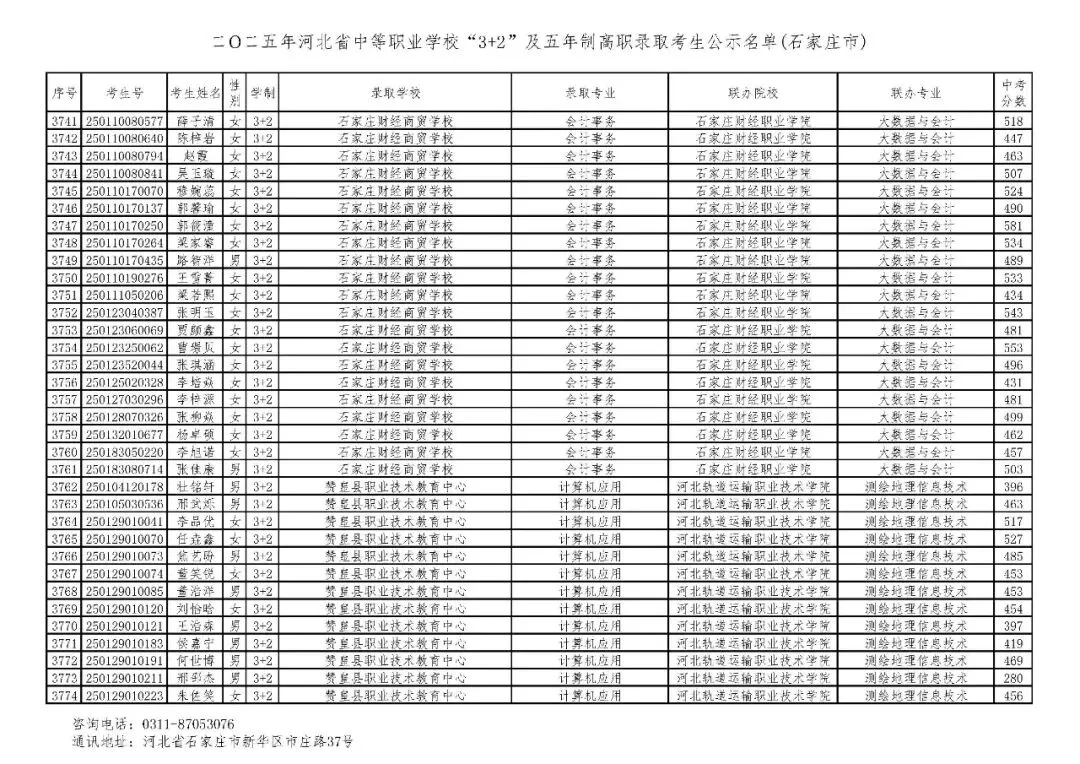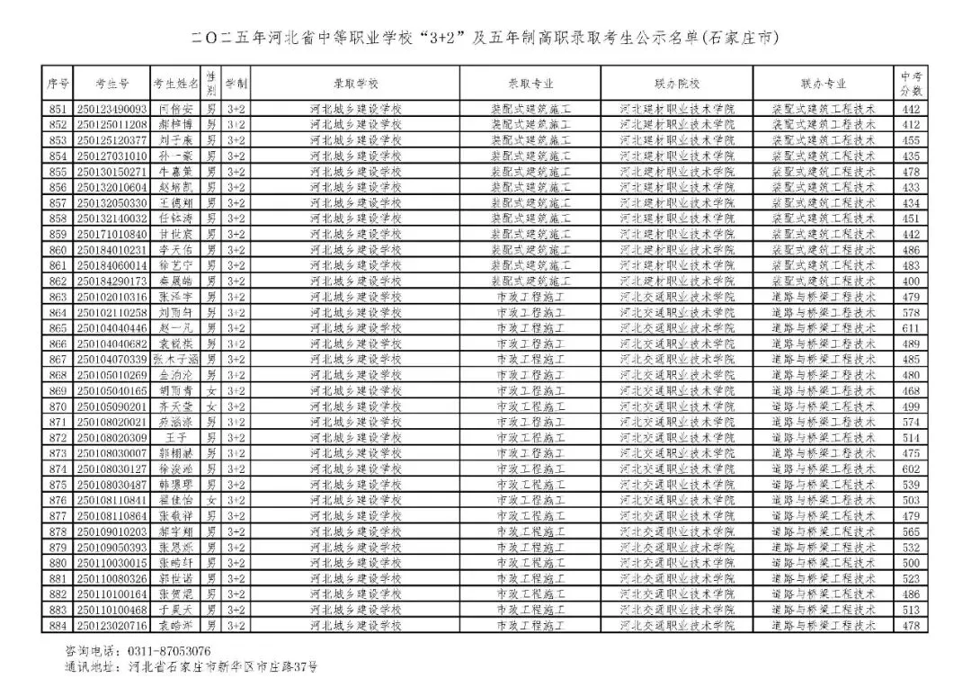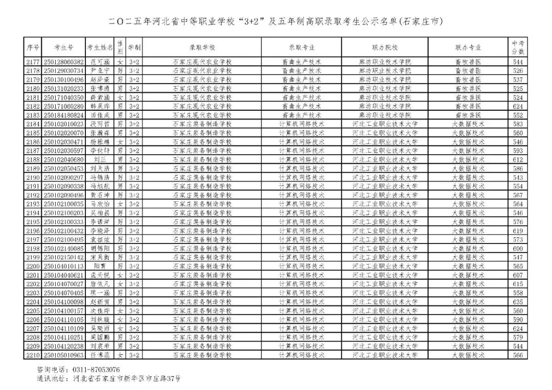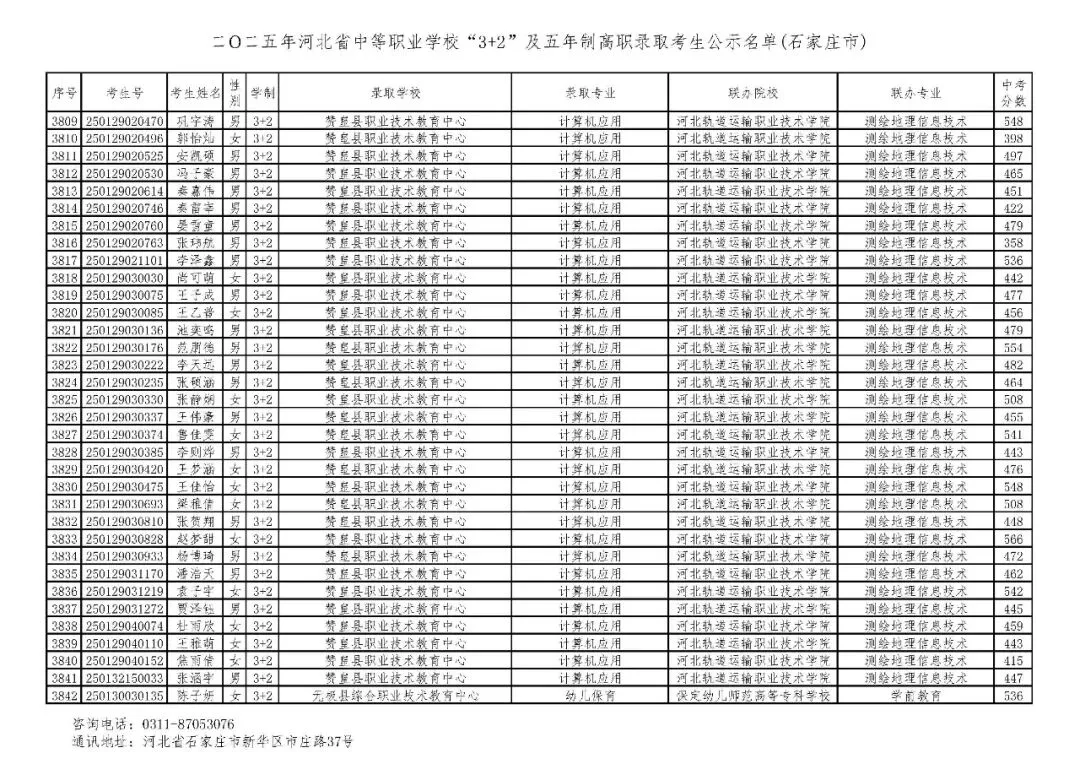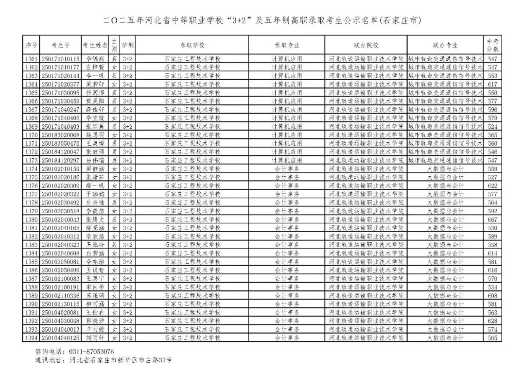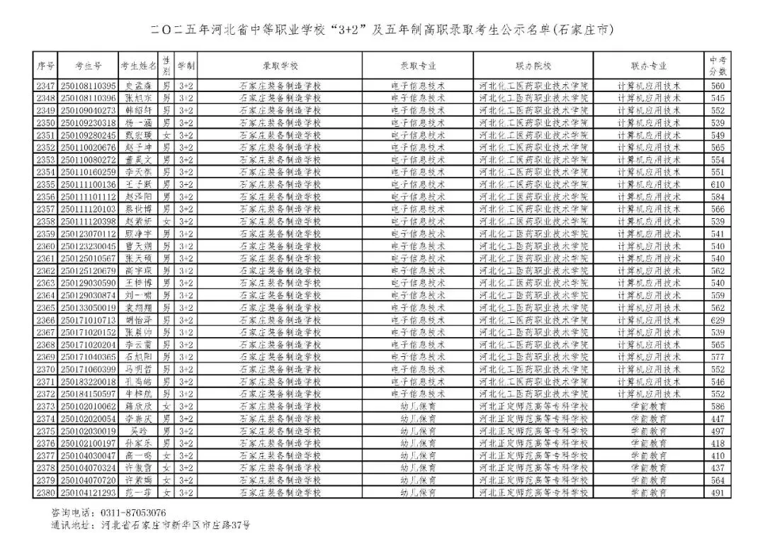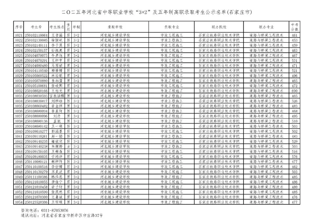 >石家庄市2025年中考,五年一贯制、3+2录取分数线