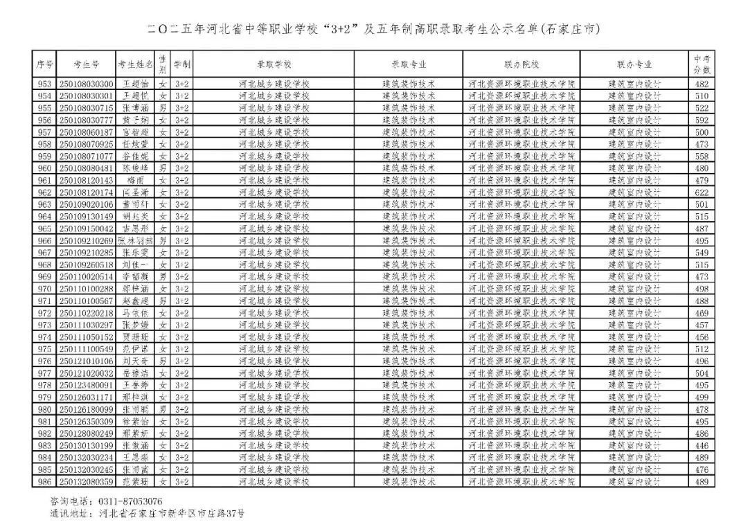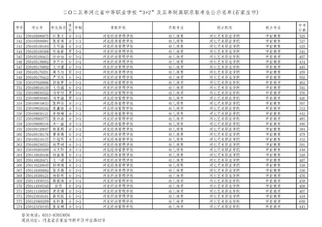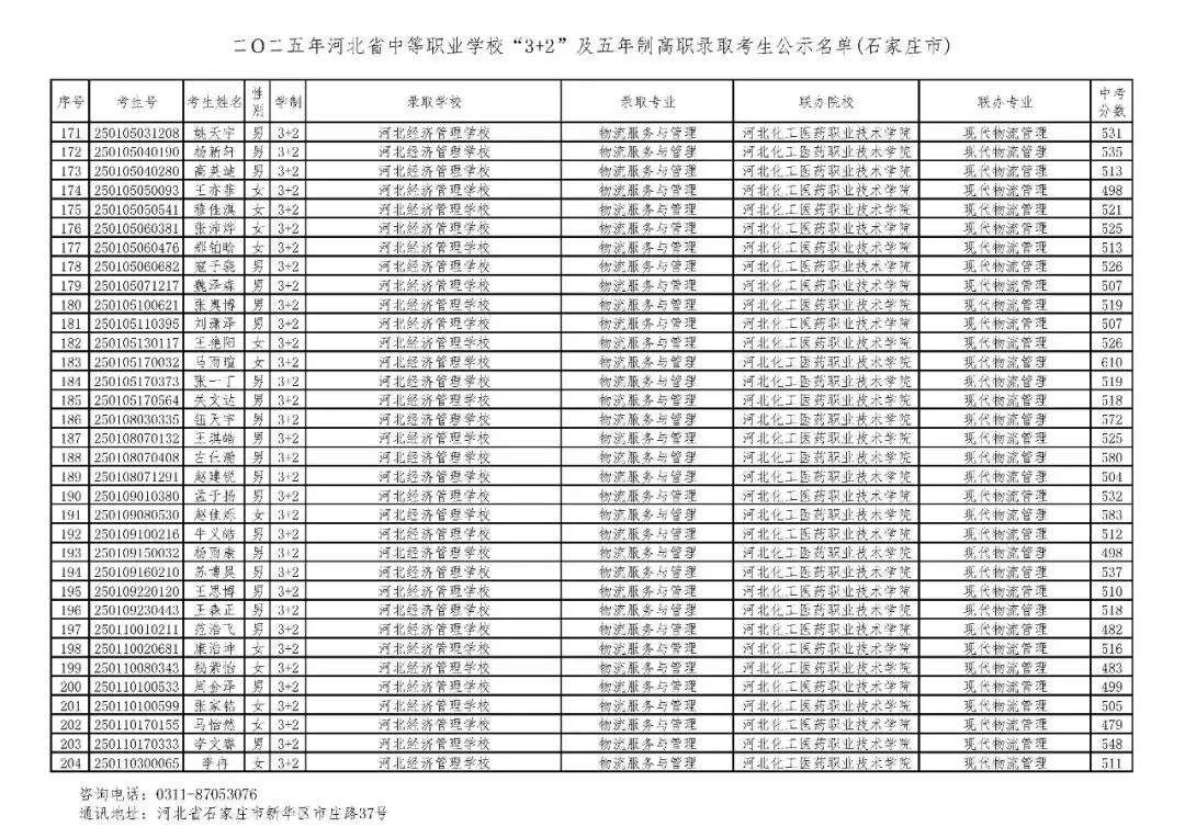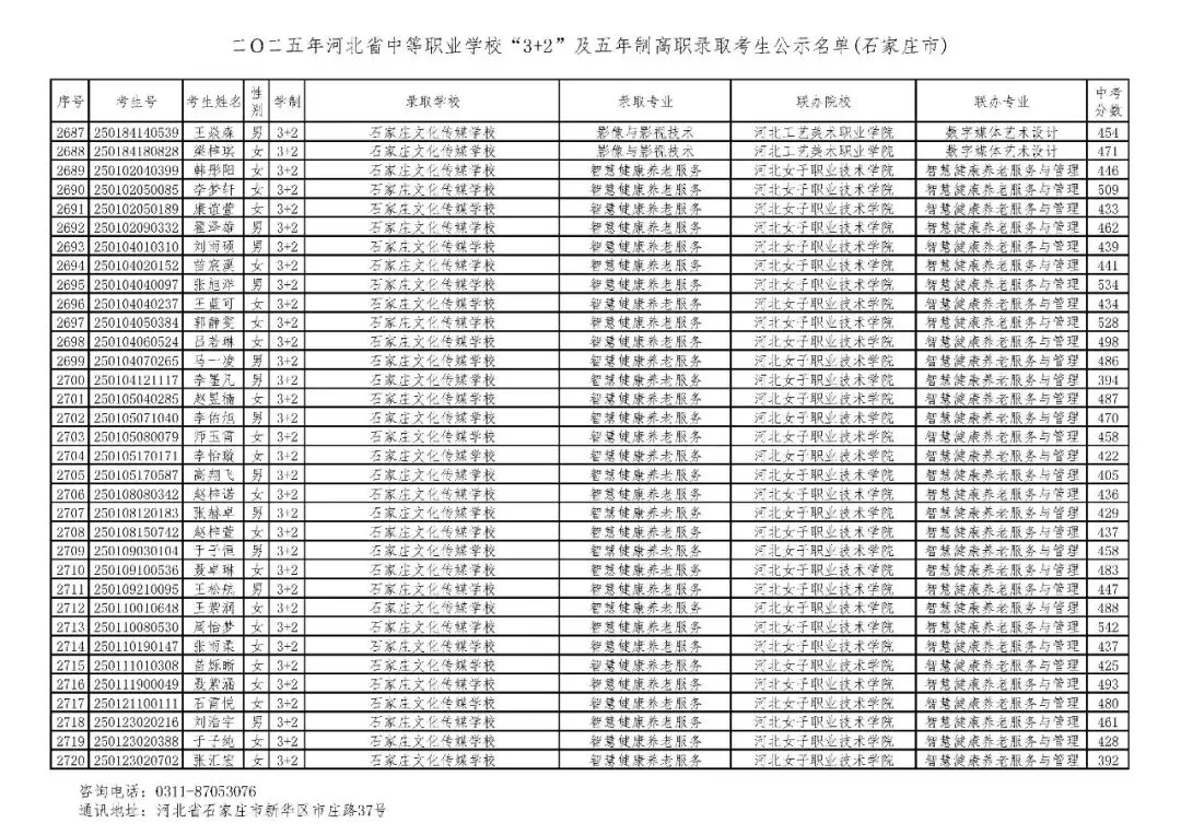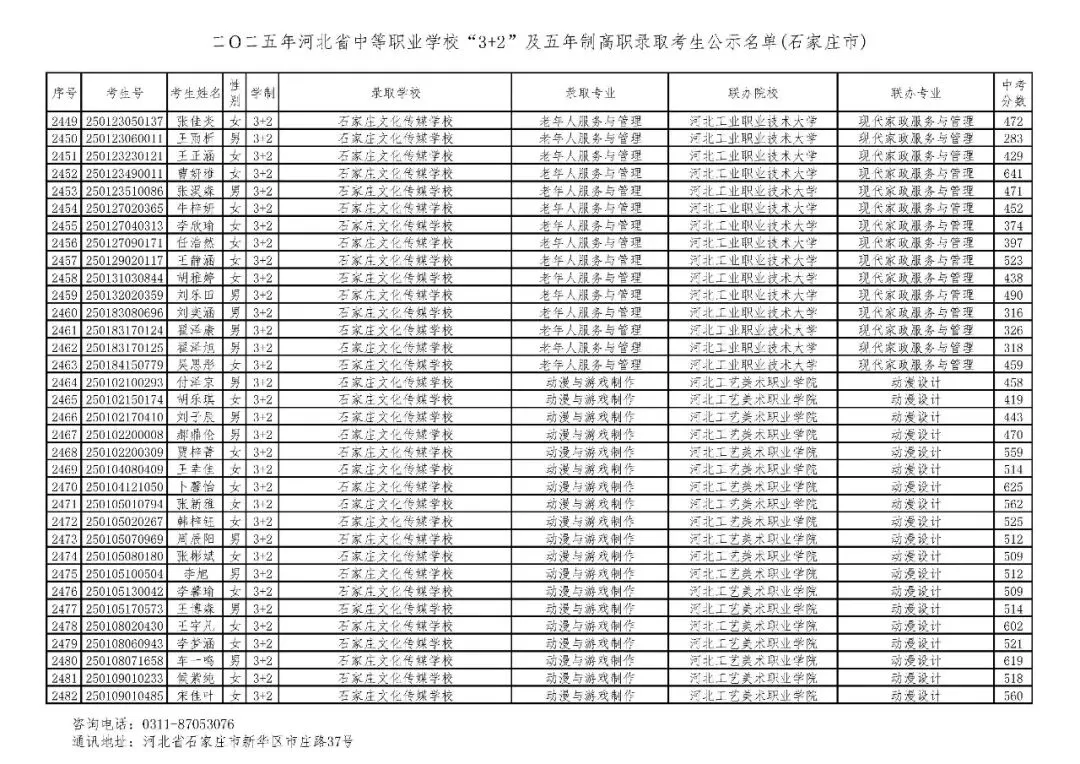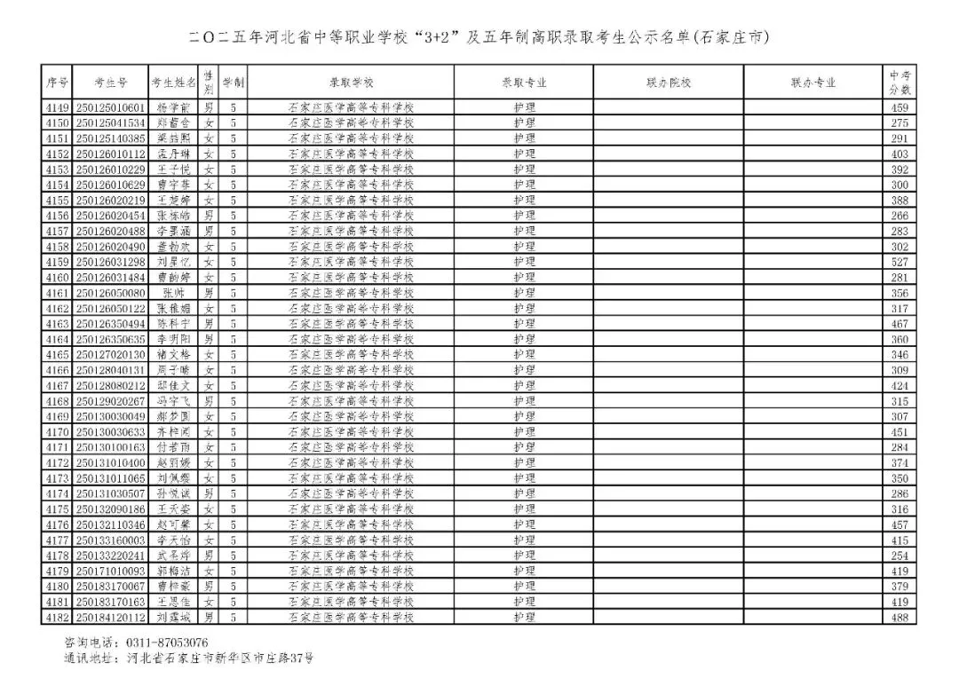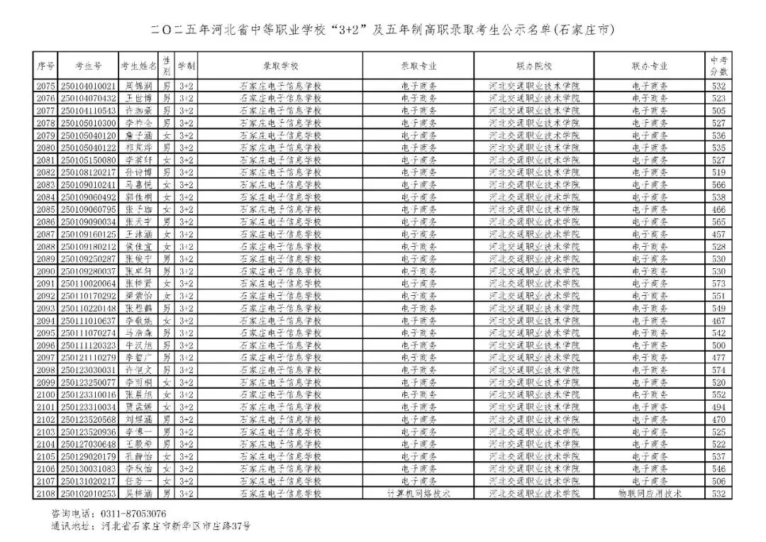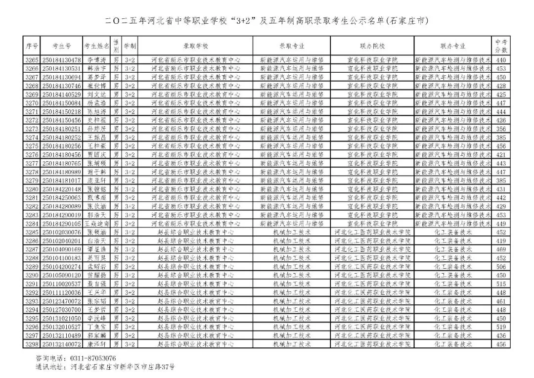 >石家庄市2025年中考,五年一贯制、3+2录取分数线