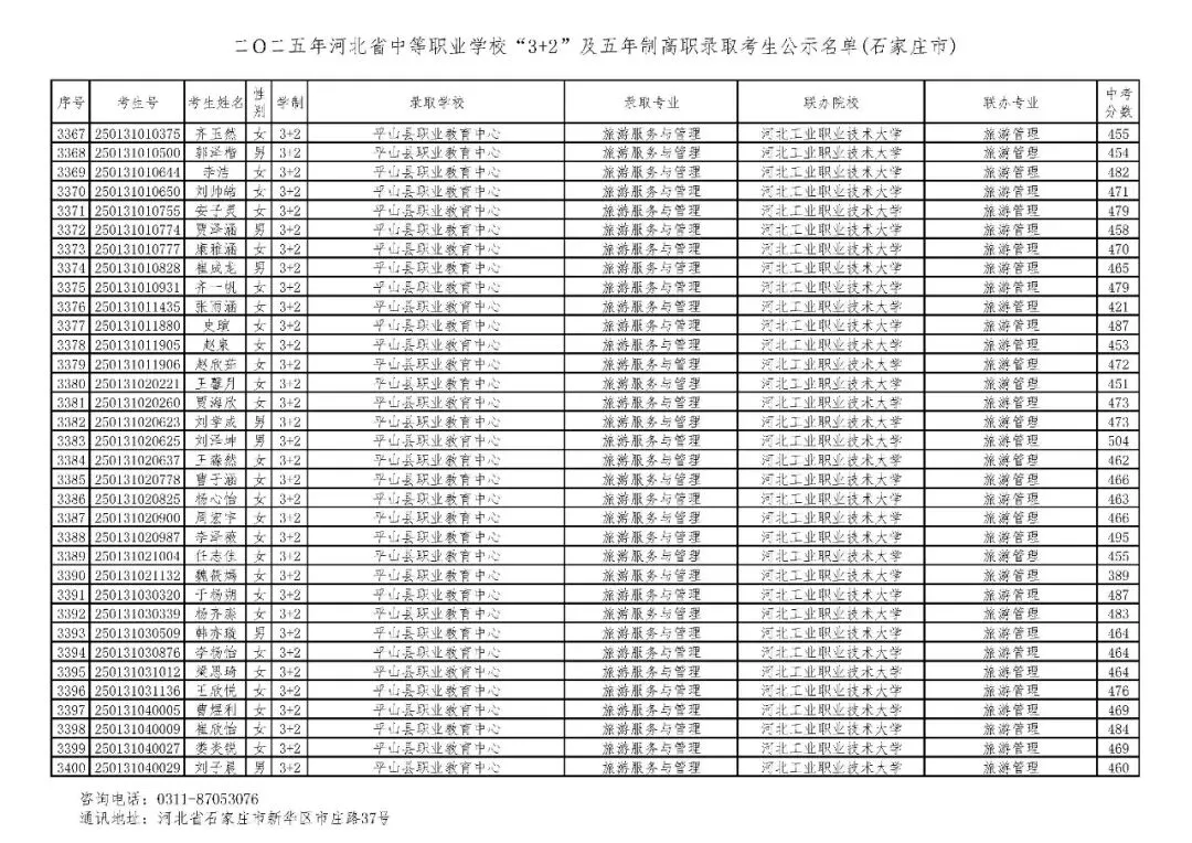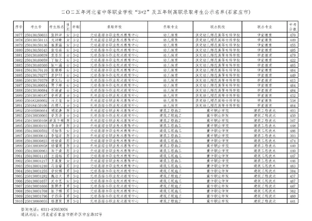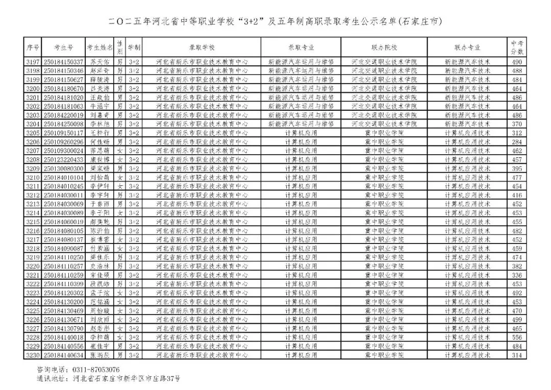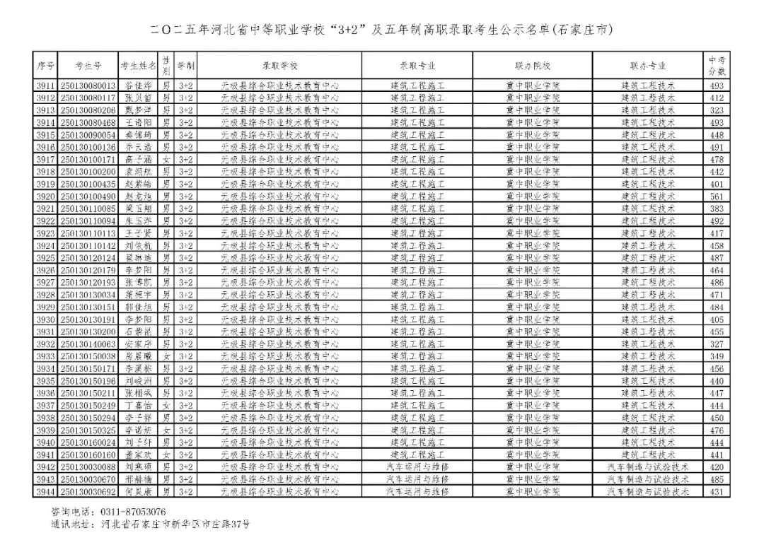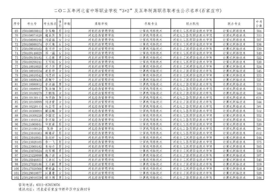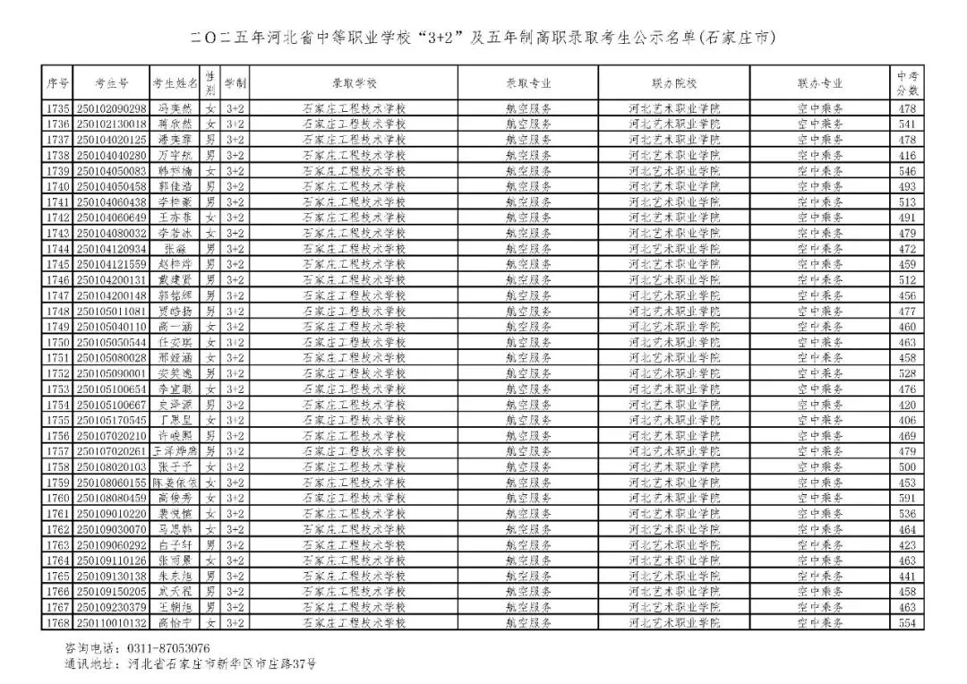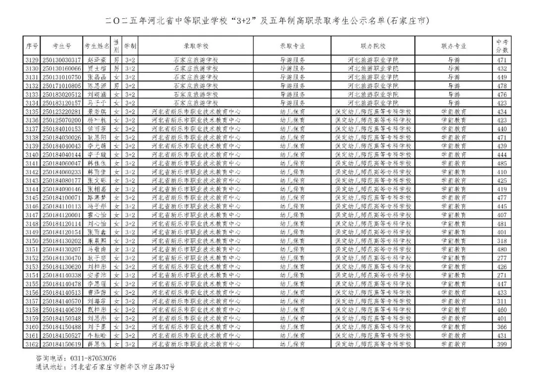 >石家庄市2025年中考,五年一贯制、3+2录取分数线