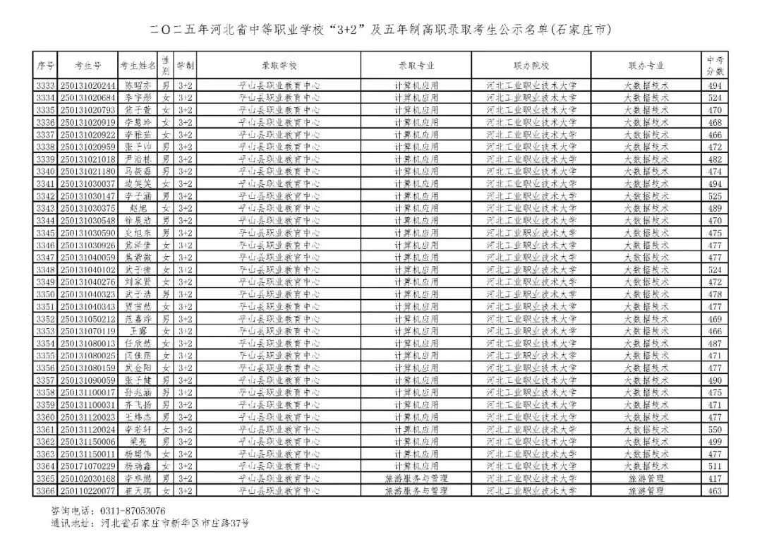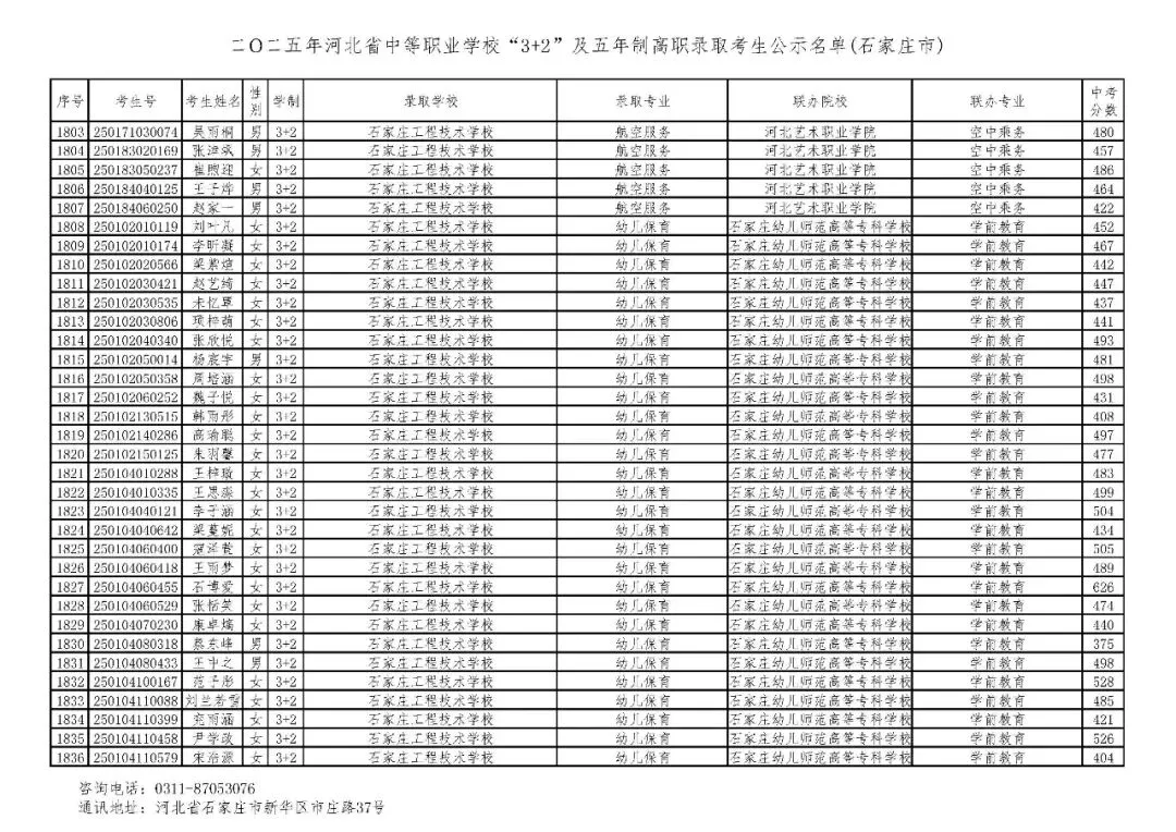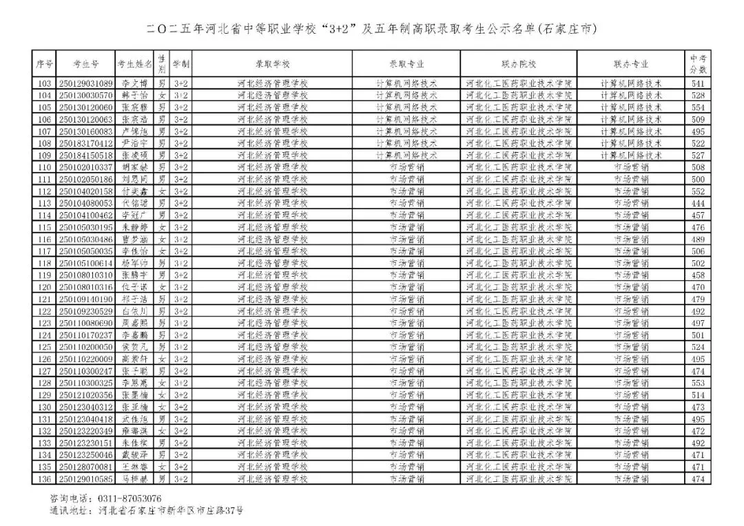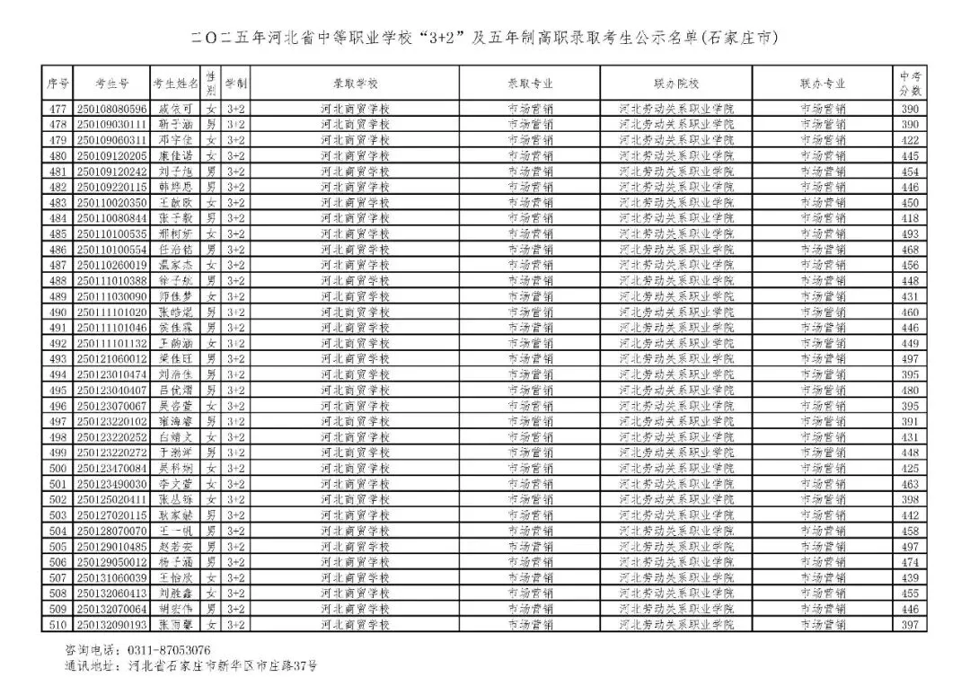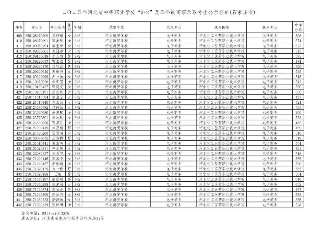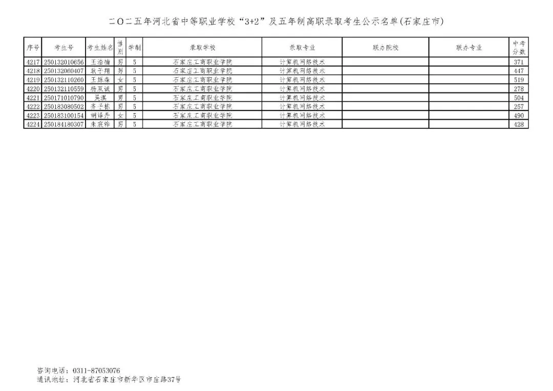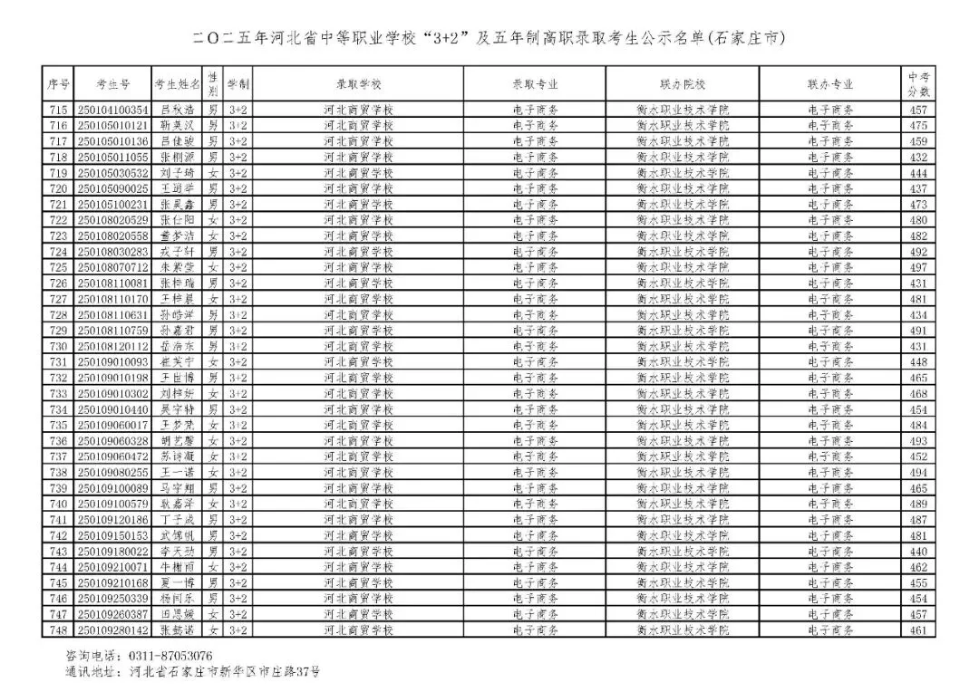 >石家庄市2025年中考,五年一贯制、3+2录取分数线