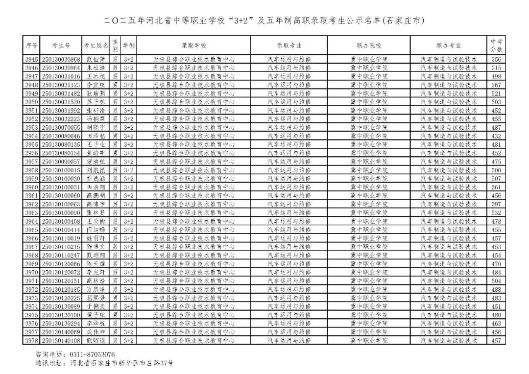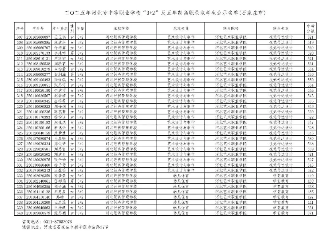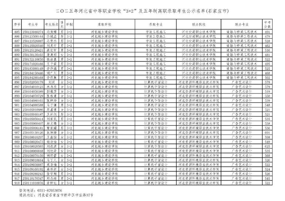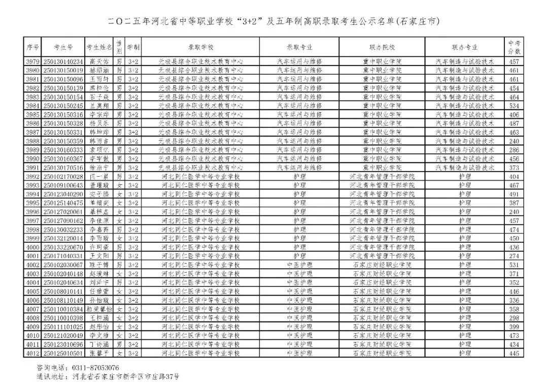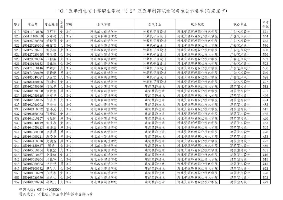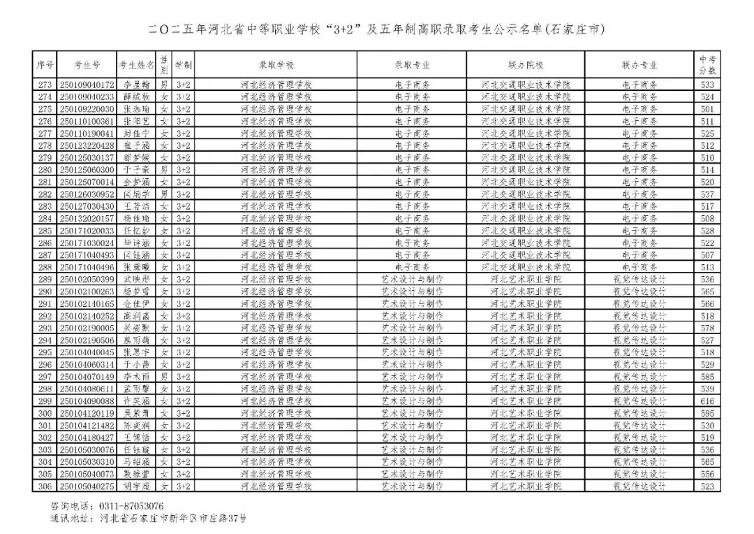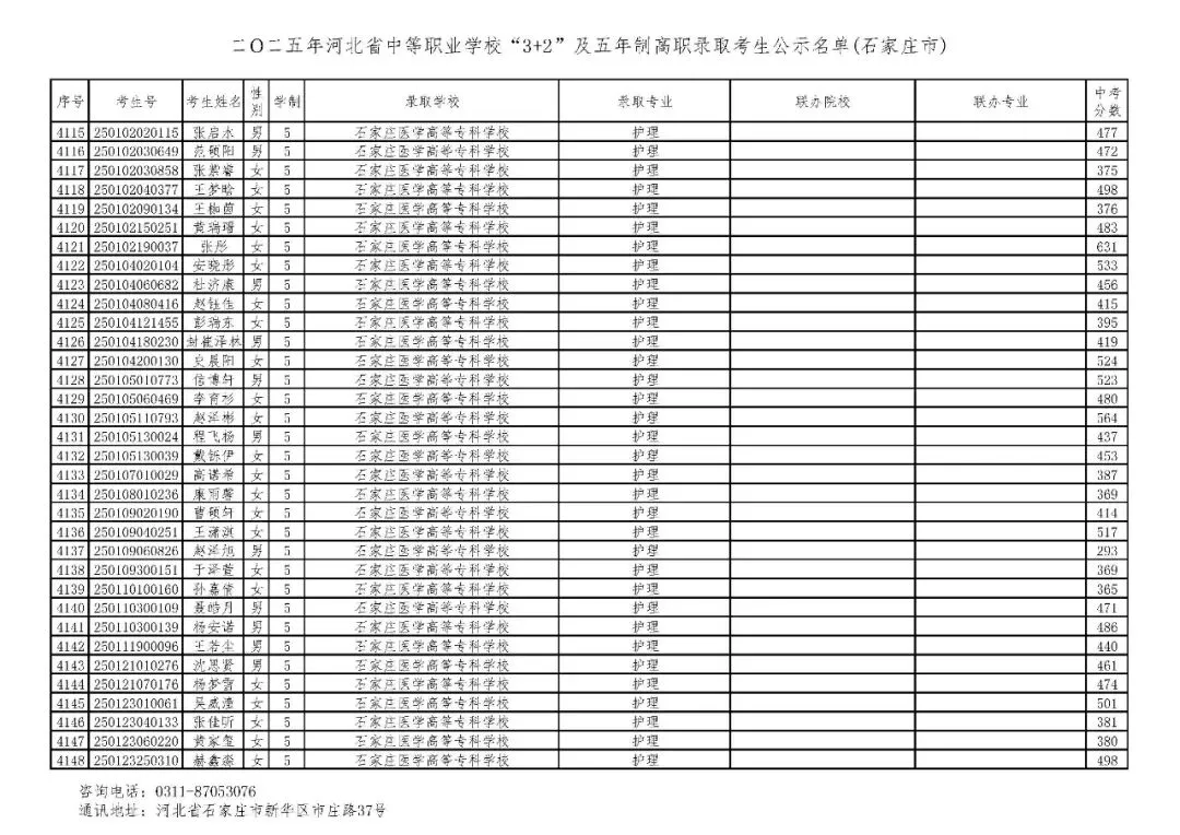 >石家庄市2025年中考,五年一贯制、3+2录取分数线