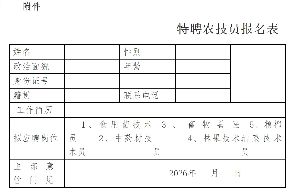 2.基本条件:拥护党的领导,遵纪守法,品行端正,热爱农业农村工作,责任心与服务意识强。年龄25-60周岁,身心健康,能进村入户开展田间指导。具备对应产业丰富实践经验与技术专长,能解决生产实际问题;大专及以上学历或中级以上技术职称者优先,“土专家”等经验丰富者学历可适当放宽。会使用“中国农技推广APP”,服从工作安排,无违法犯罪记录,非体制内在编在岗人员。
